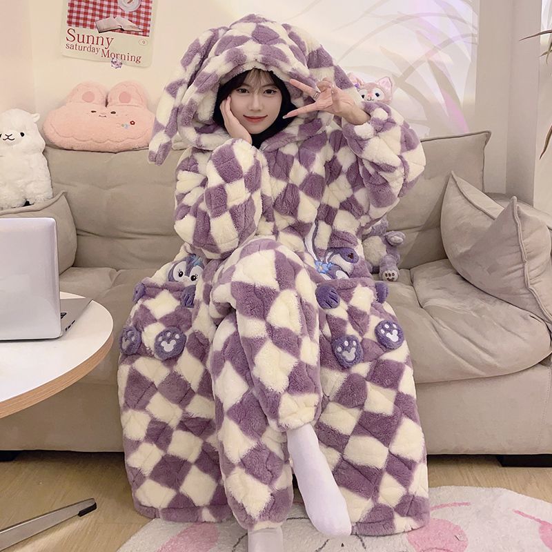 • 가운 + 면바지 보라색 스타듀 긴귀 두꺼운 양복