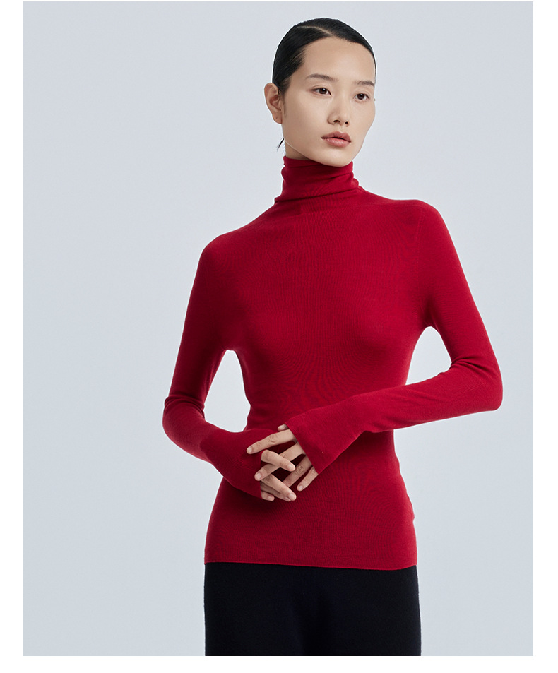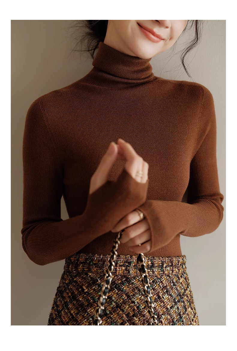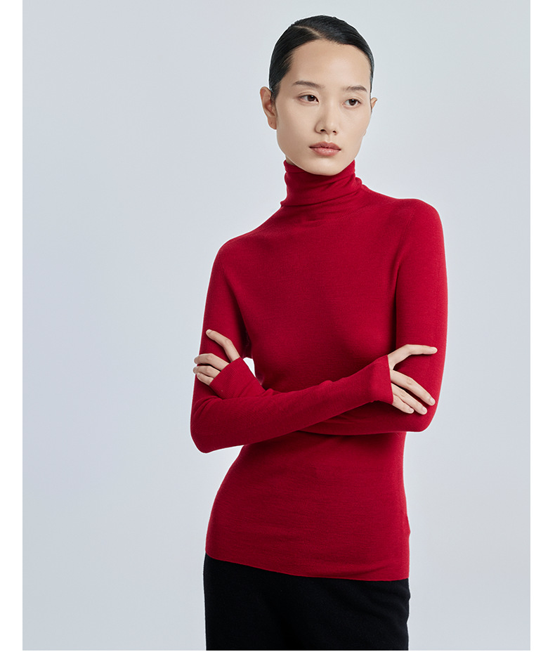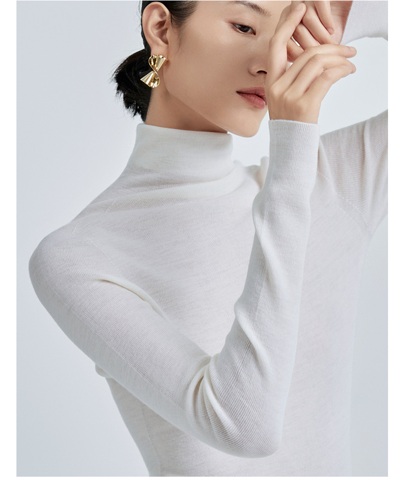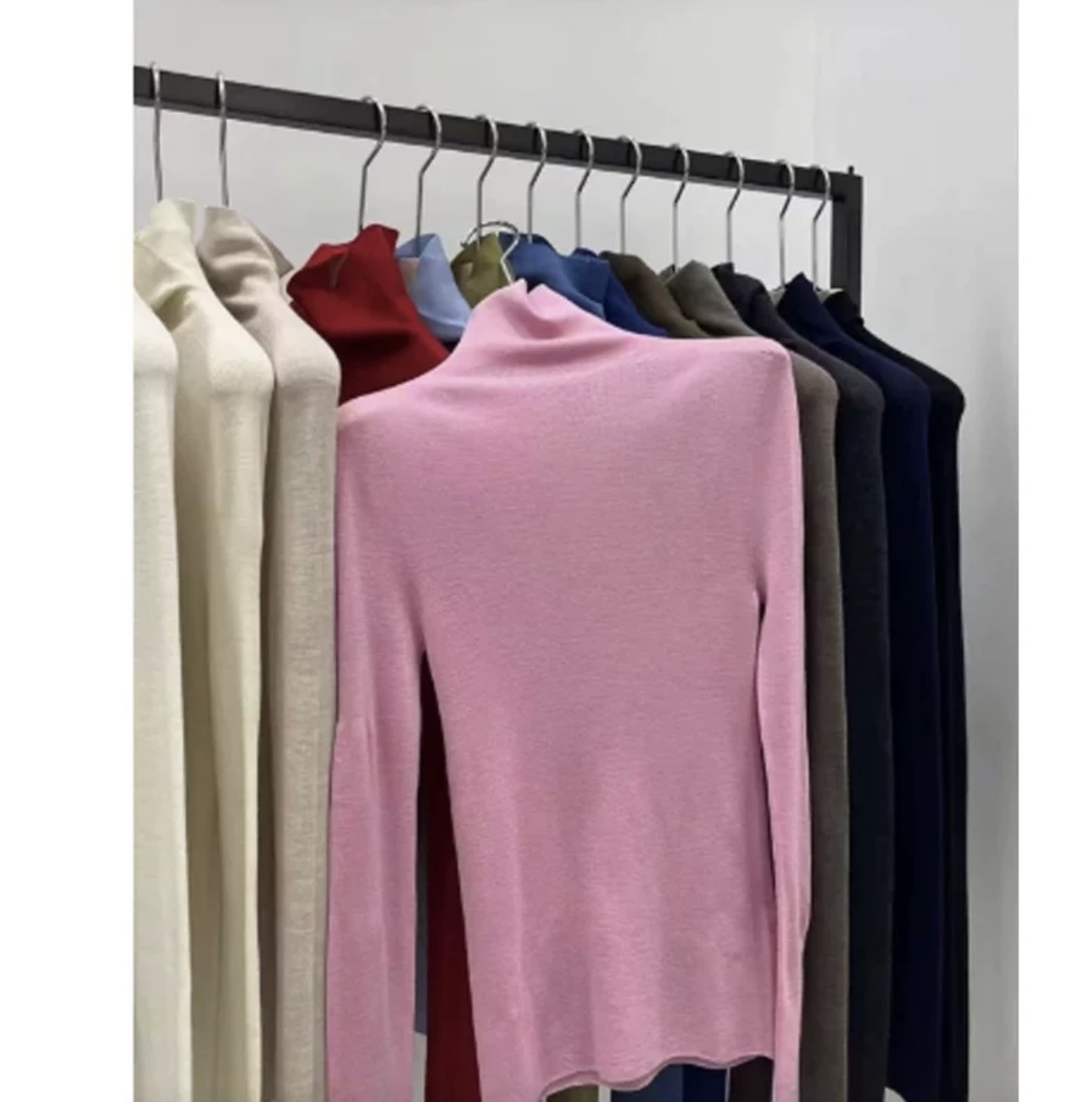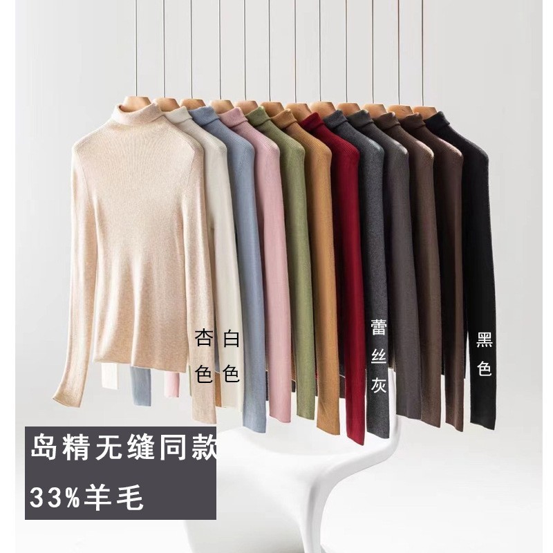 【양쯔사】18바늘 무봉제 하이넥 여성용 가을 겨울 풀오버 긴팔 니트 스웨터 울 스웨터 여성용스토어 가기