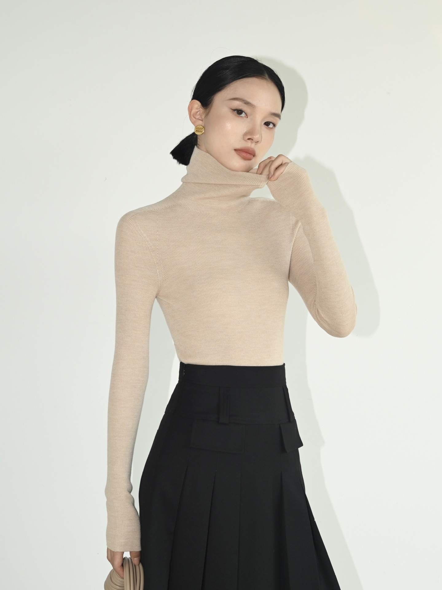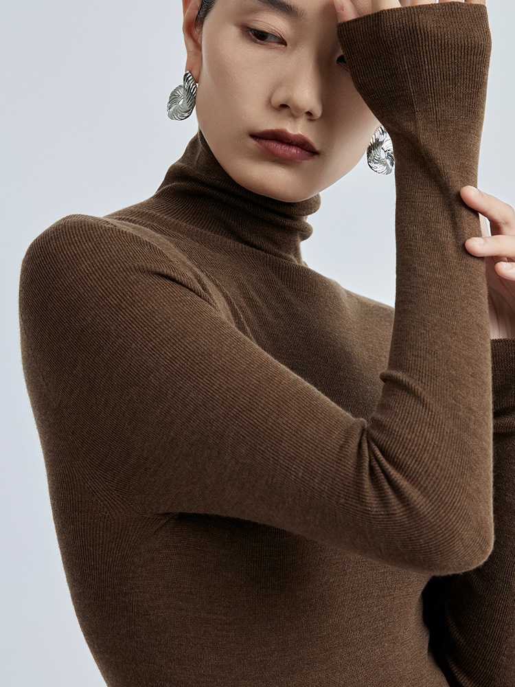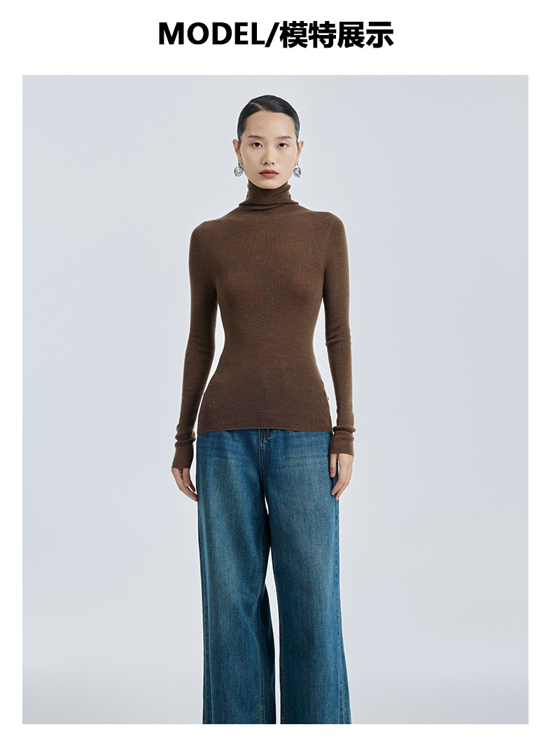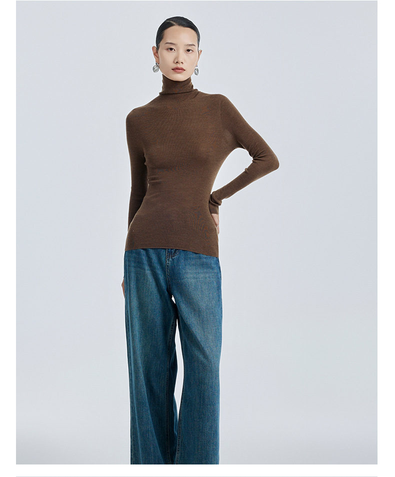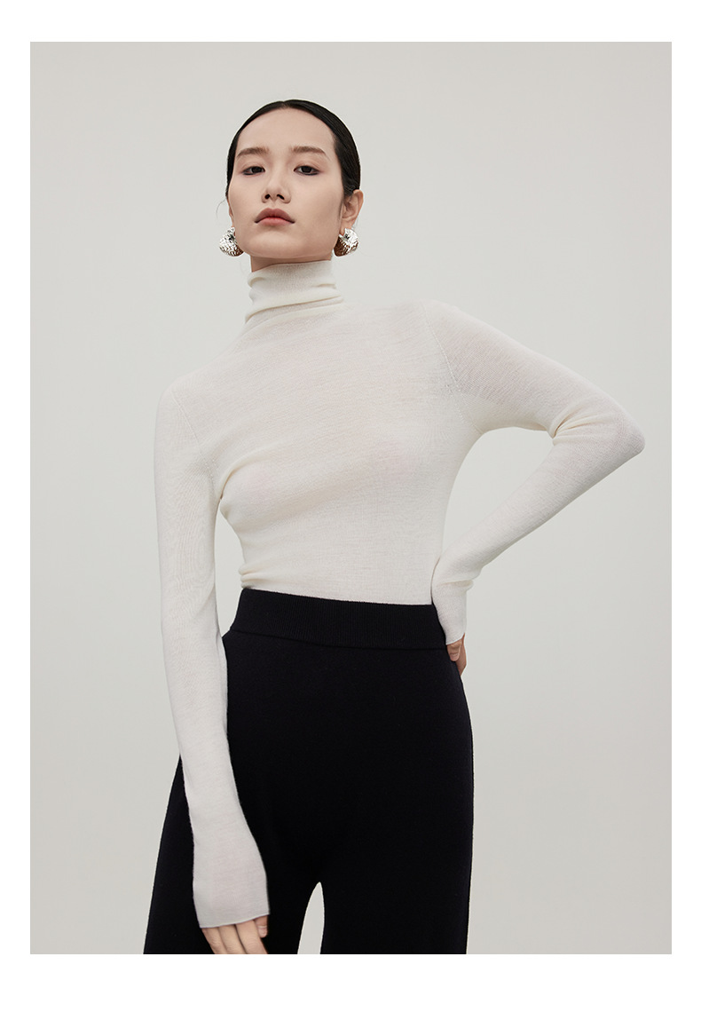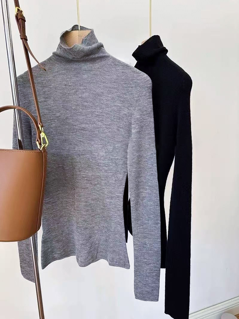 【양쯔사】18바늘 무봉제 하이넥 여성용 가을 겨울 풀오버 긴팔 니트 스웨터 울 스웨터 여성용스토어 가기