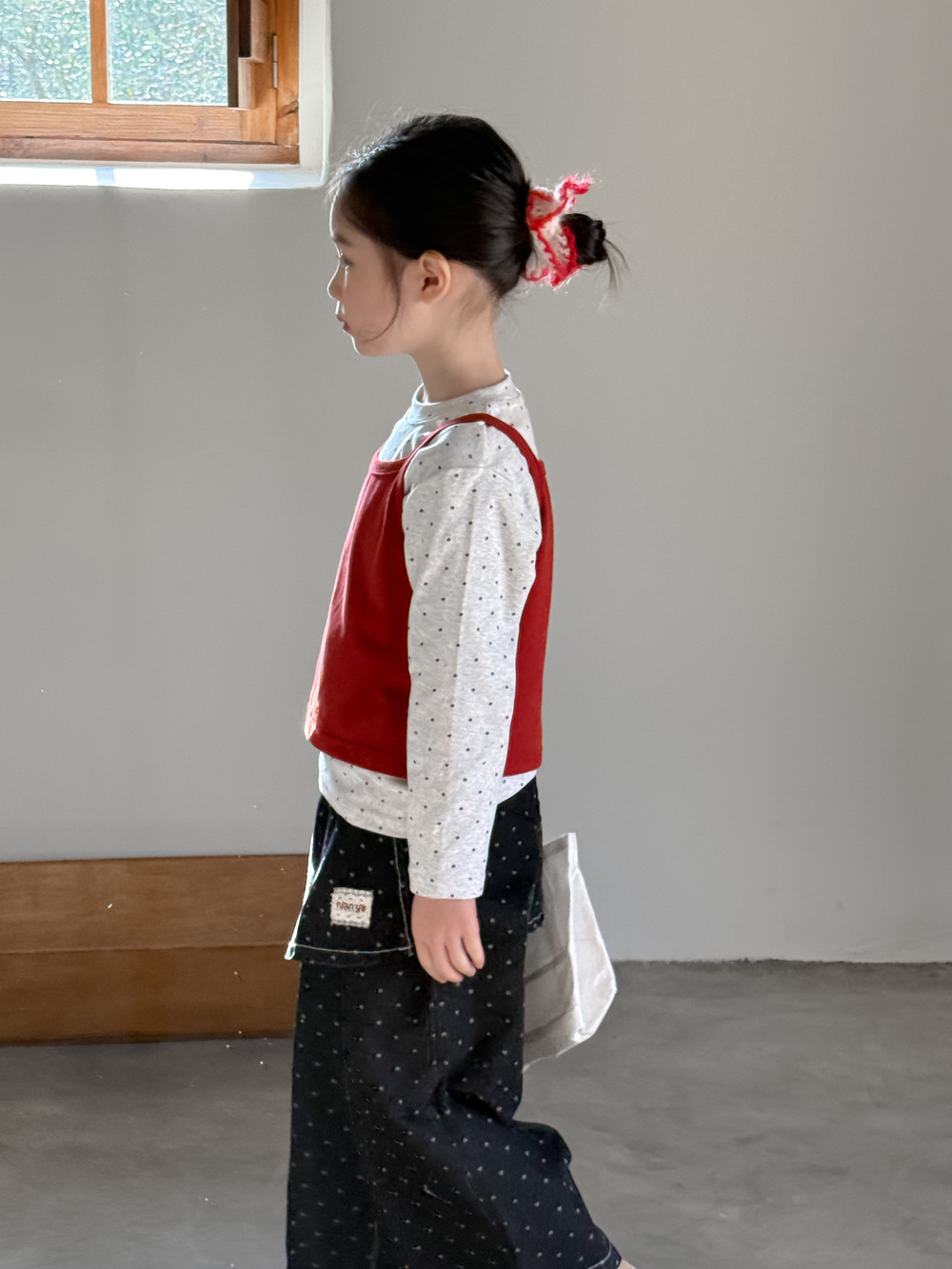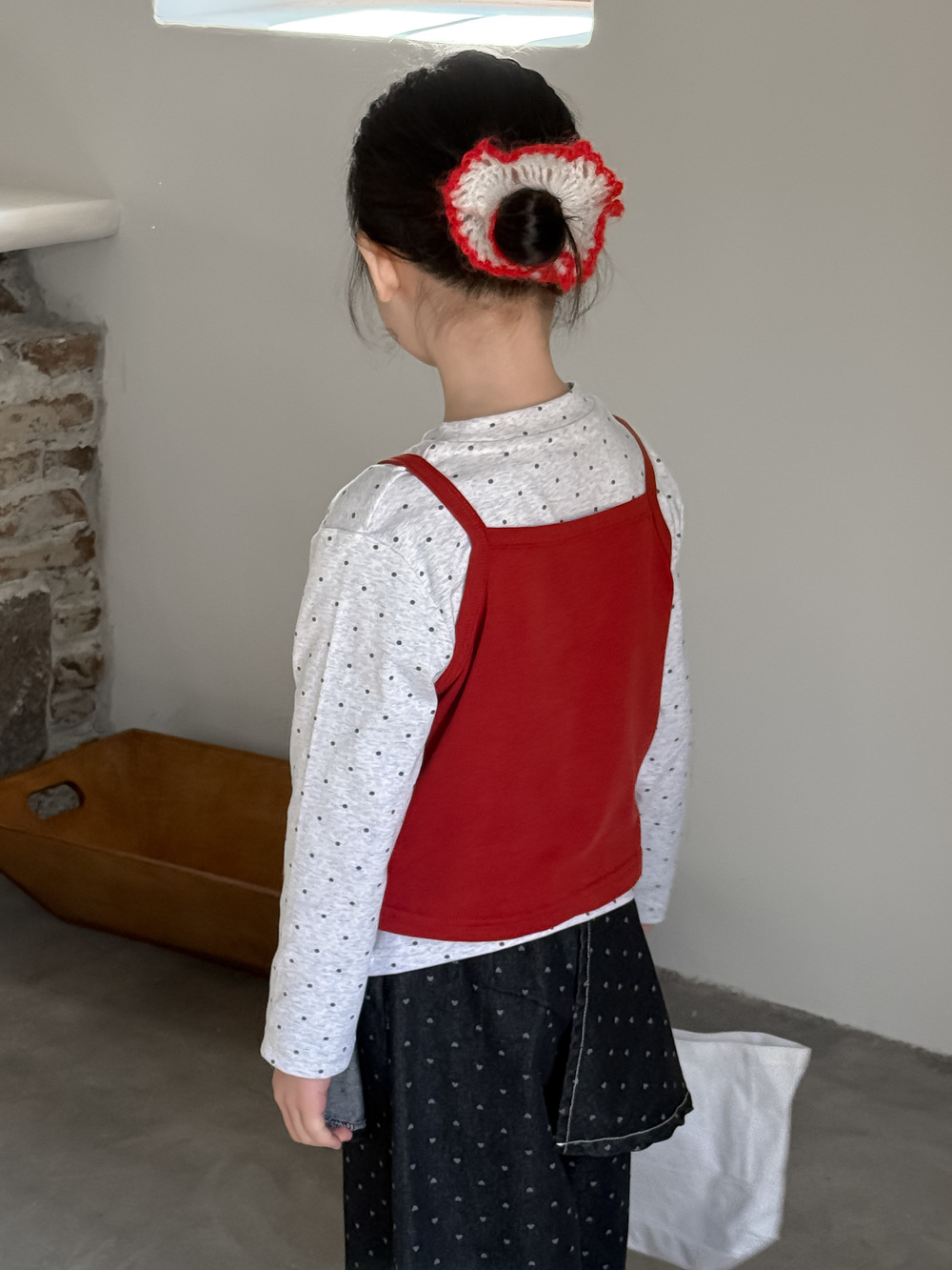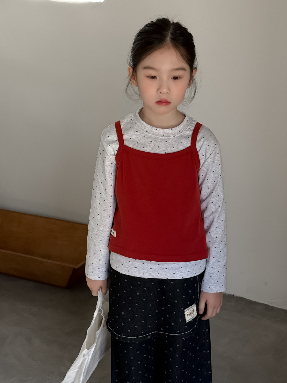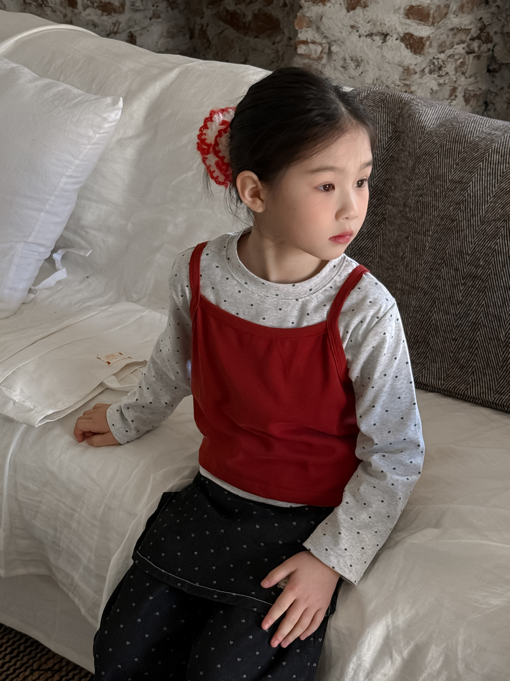 아동 조끼 2026 봄 스타일 여아용 한국 스타일 단색 니트 조끼 어린이 심플 도트 무늬 베이스 셔츠 모샤오멍스토어 가기