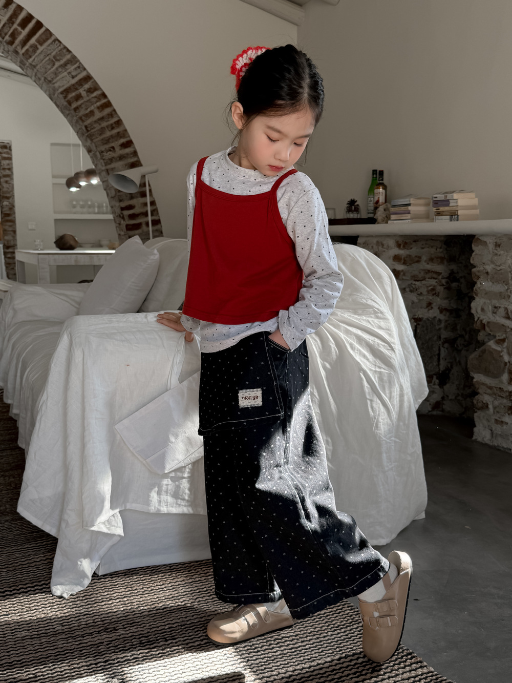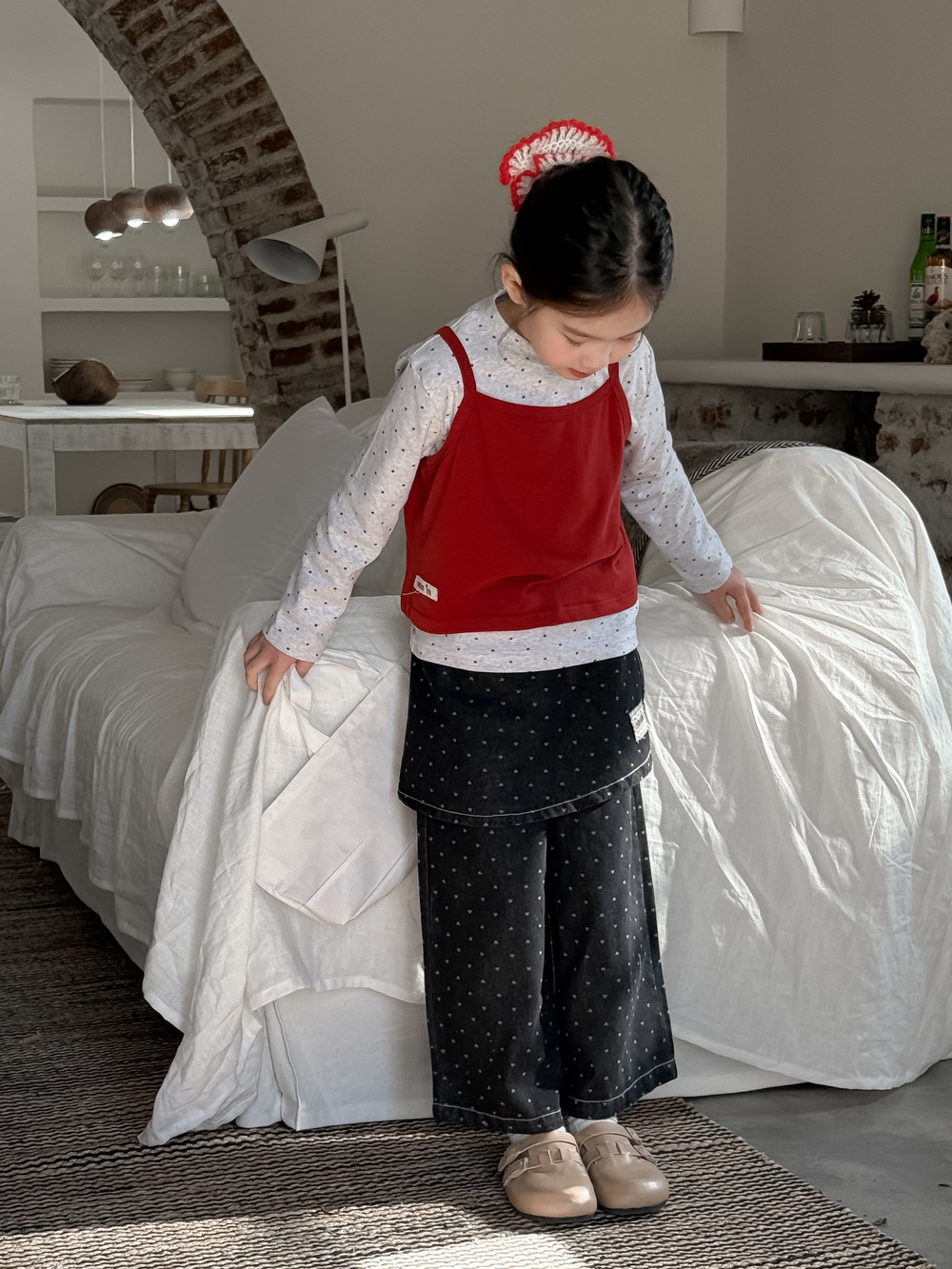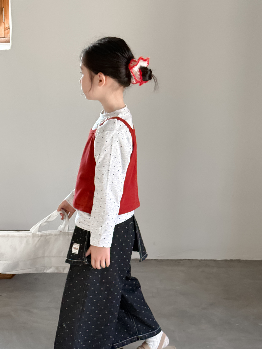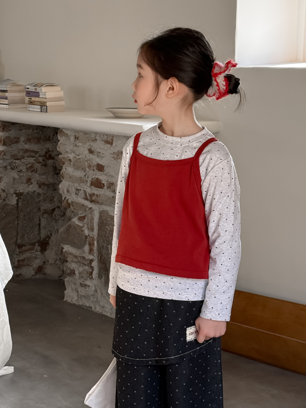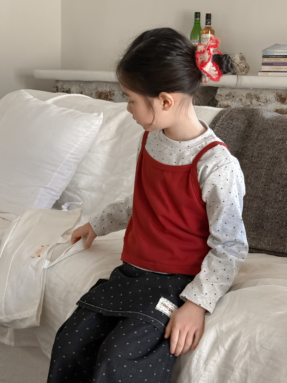 아동 조끼 2026 봄 스타일 여아용 한국 스타일 단색 니트 조끼 어린이 심플 도트 무늬 베이스 셔츠 모샤오멍스토어 가기