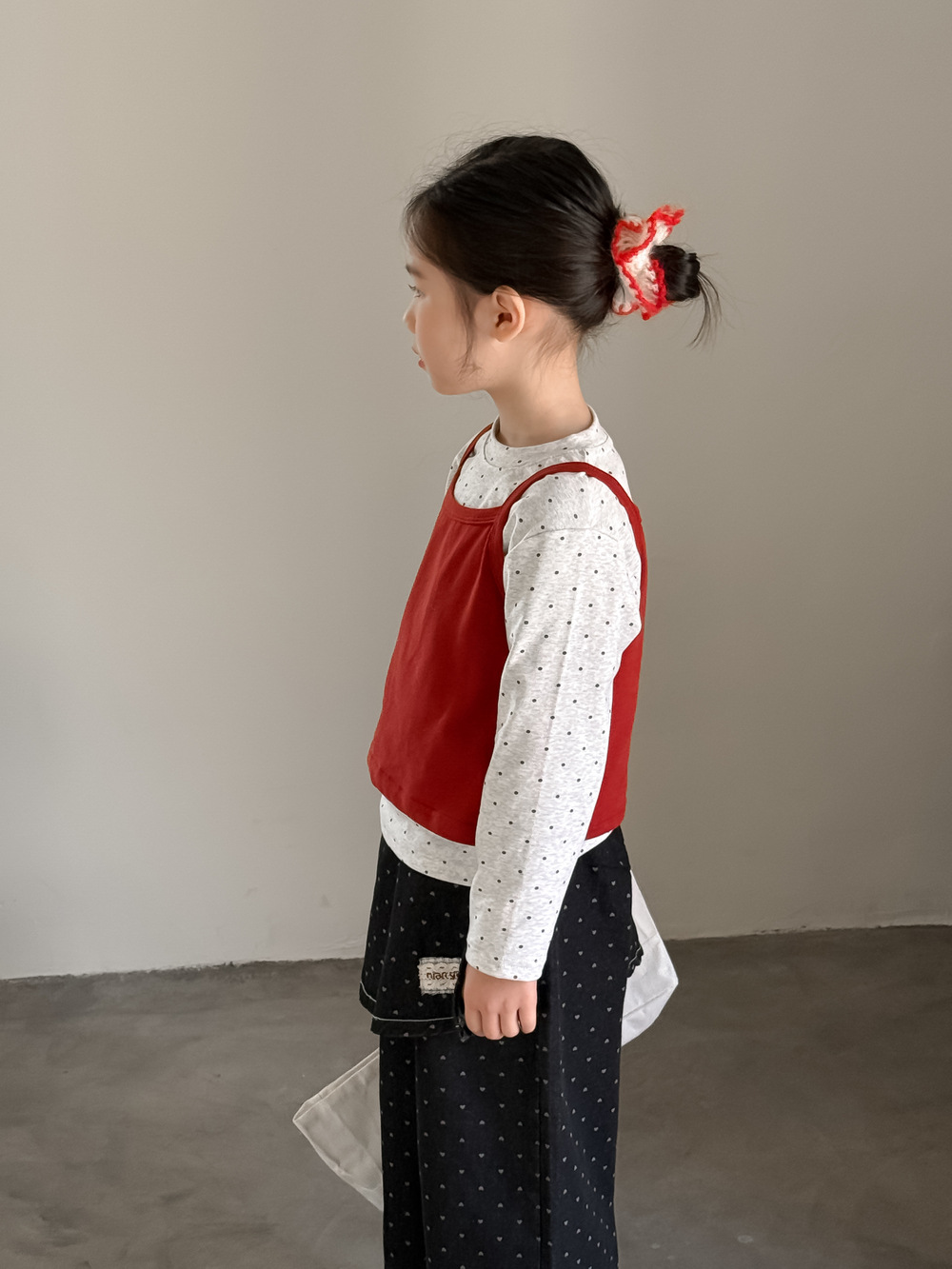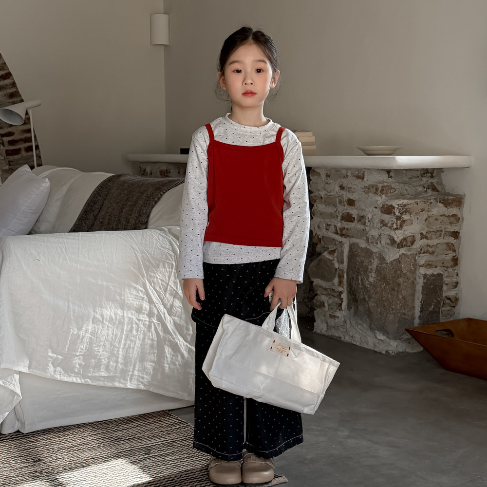아동 조끼 2026 봄 스타일 여아용 한국 스타일 단색 니트 조끼 어린이 심플 도트 무늬 베이스 셔츠 모샤오멍