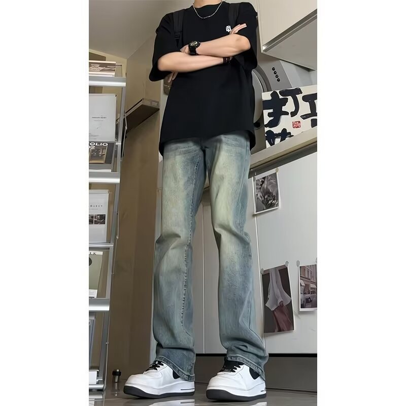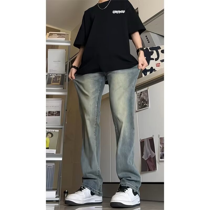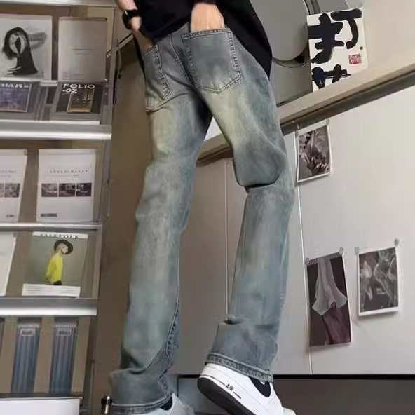 빈티지 블루 청바지 남성용 가을 아메리칸 스타일 빈티지 바지 트렌디 브랜드 느슨한 슬리밍 좁은 에디션 스트레이트 바지스토어 가기
