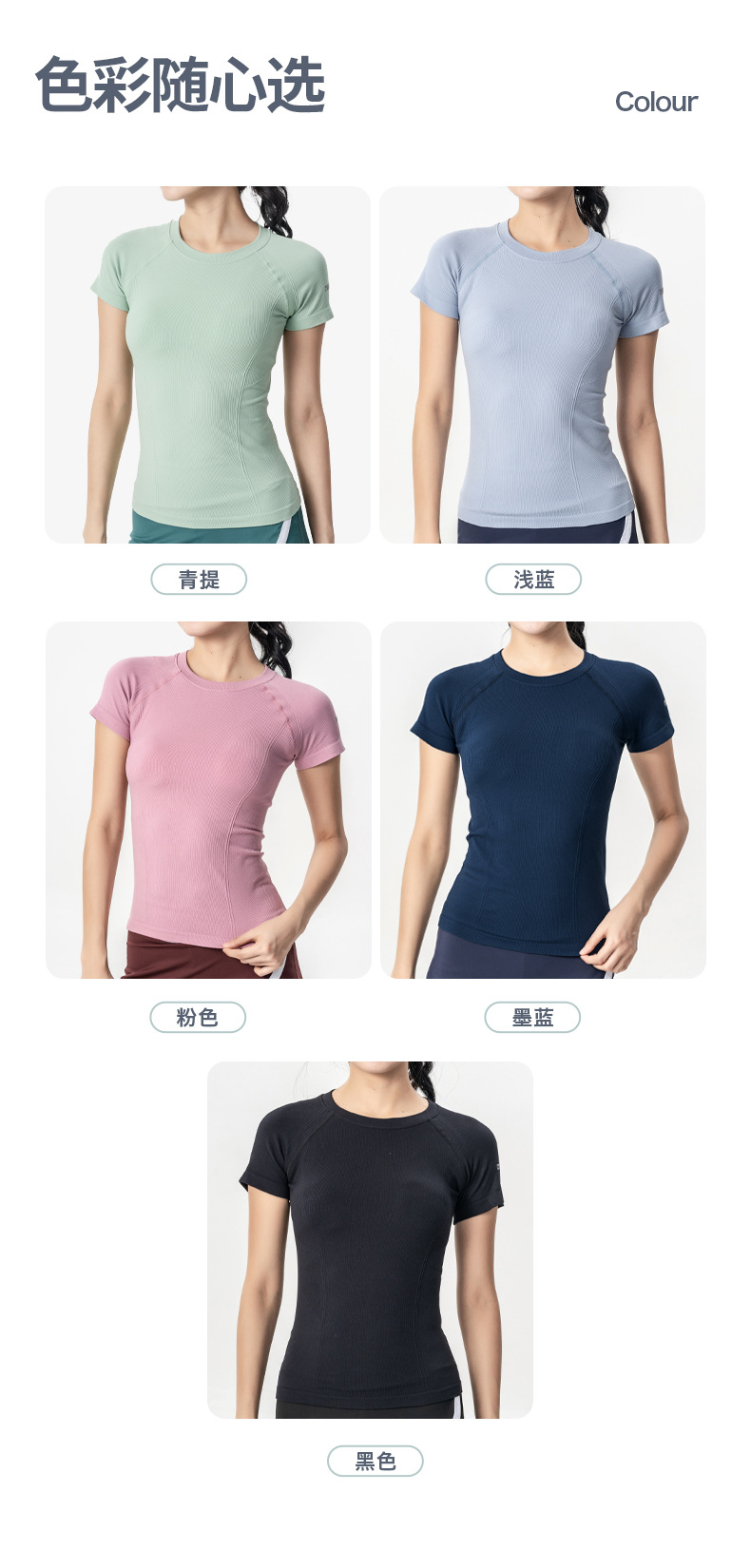 봄과 여름 새로운 반팔 스포츠 탑 요가 세트 피트니스 달리기 빠른 건조 단단한 통기성 훈련 야외 원활한 T스토어 가기