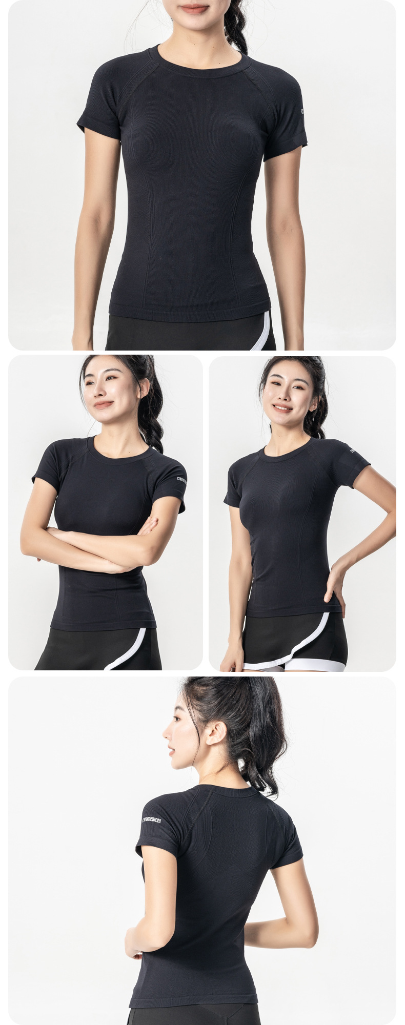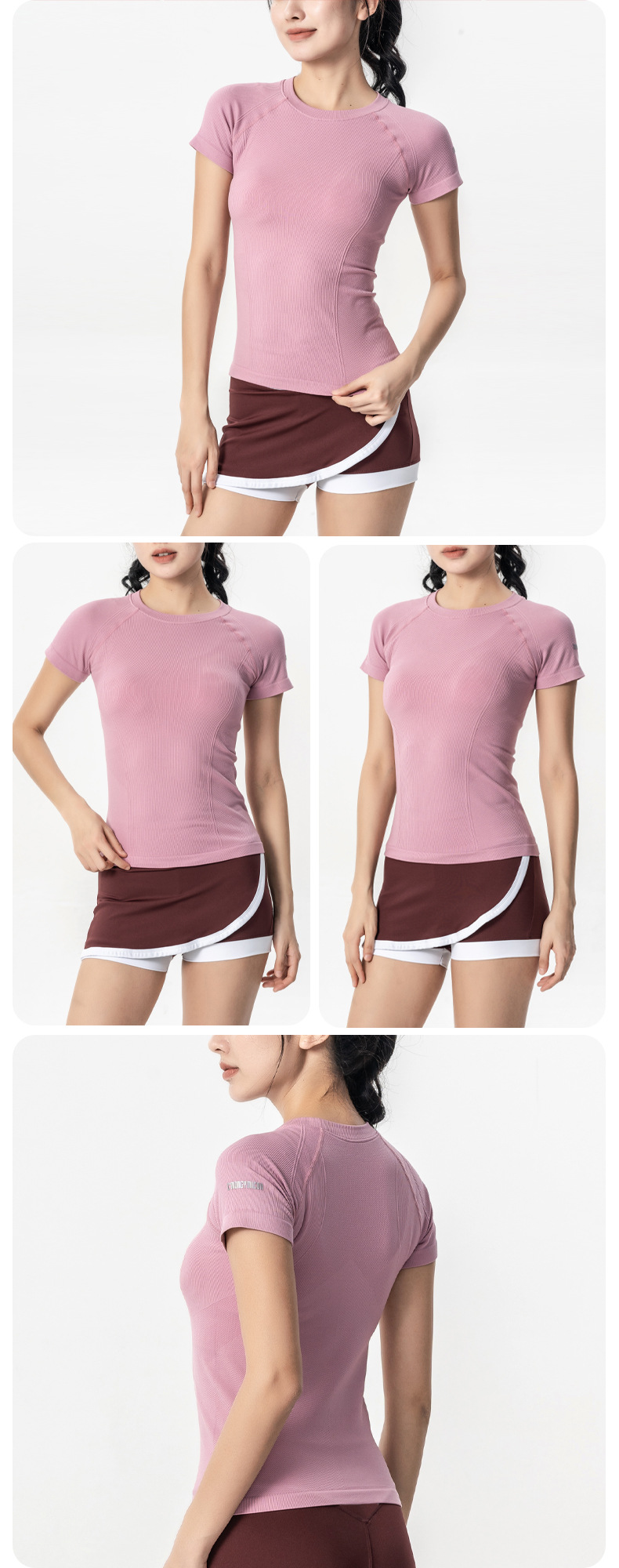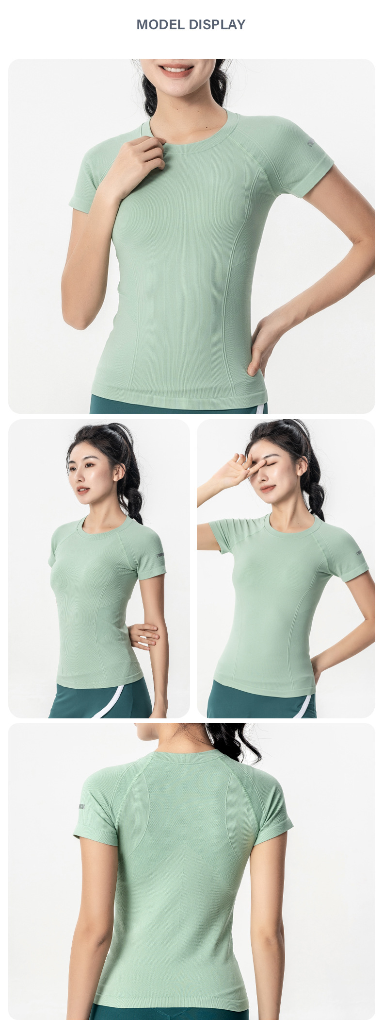봄과 여름 새로운 반팔 스포츠 탑 요가 세트 피트니스 달리기 빠른 건조 단단한 통기성 훈련 야외 원활한 T