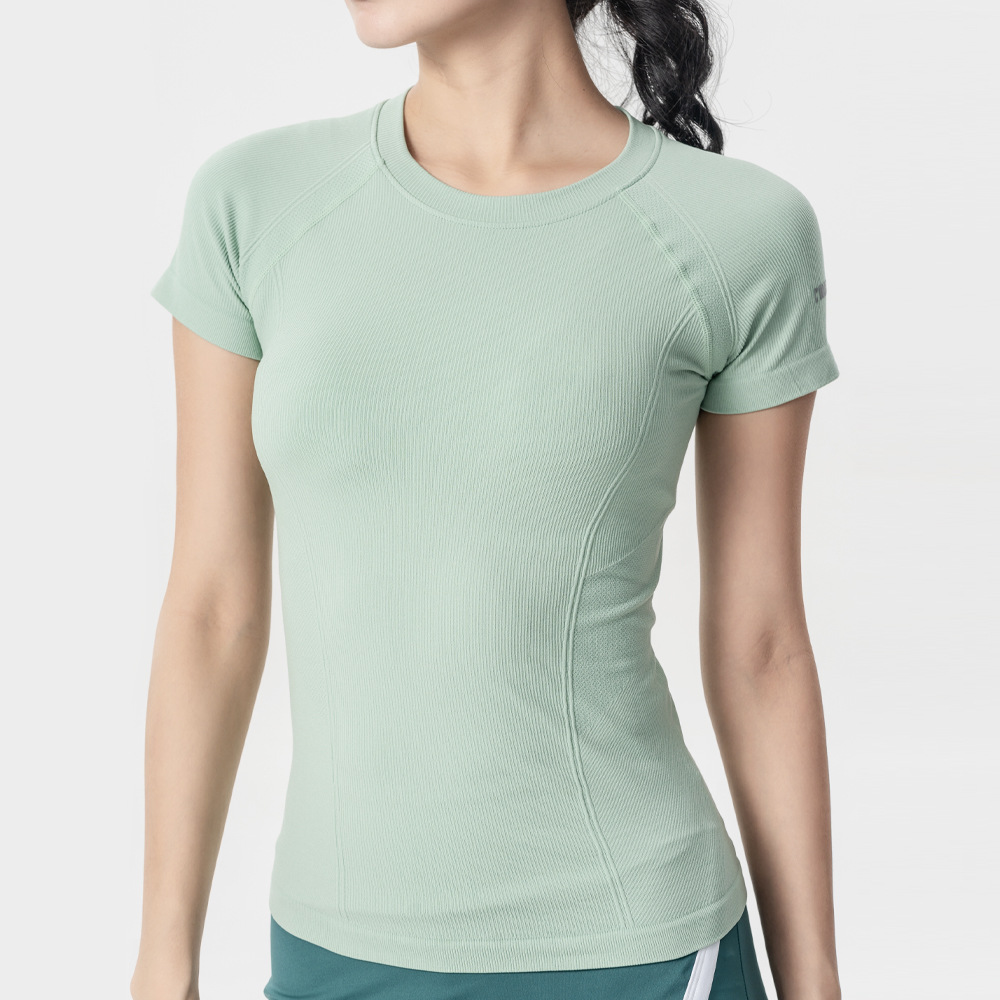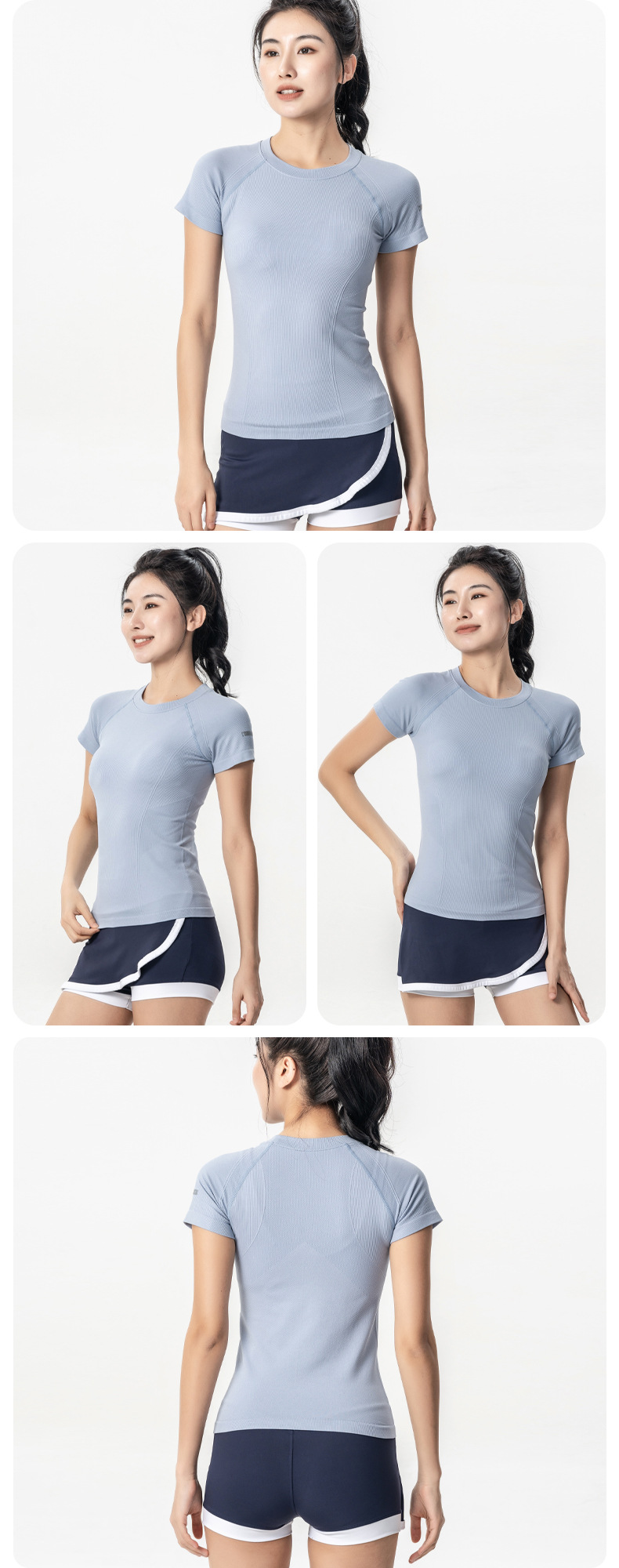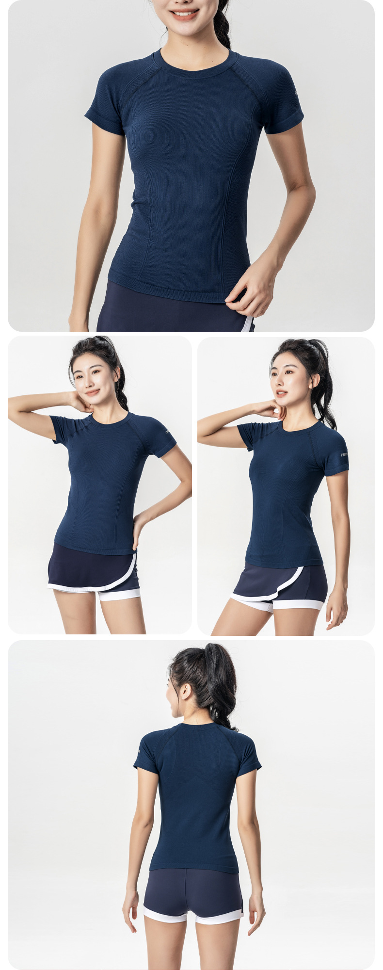 봄과 여름 새로운 반팔 스포츠 탑 요가 세트 피트니스 달리기 빠른 건조 단단한 통기성 훈련 야외 원활한 T
