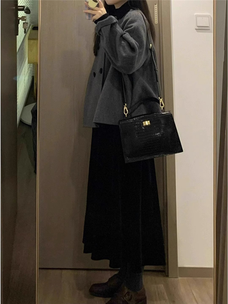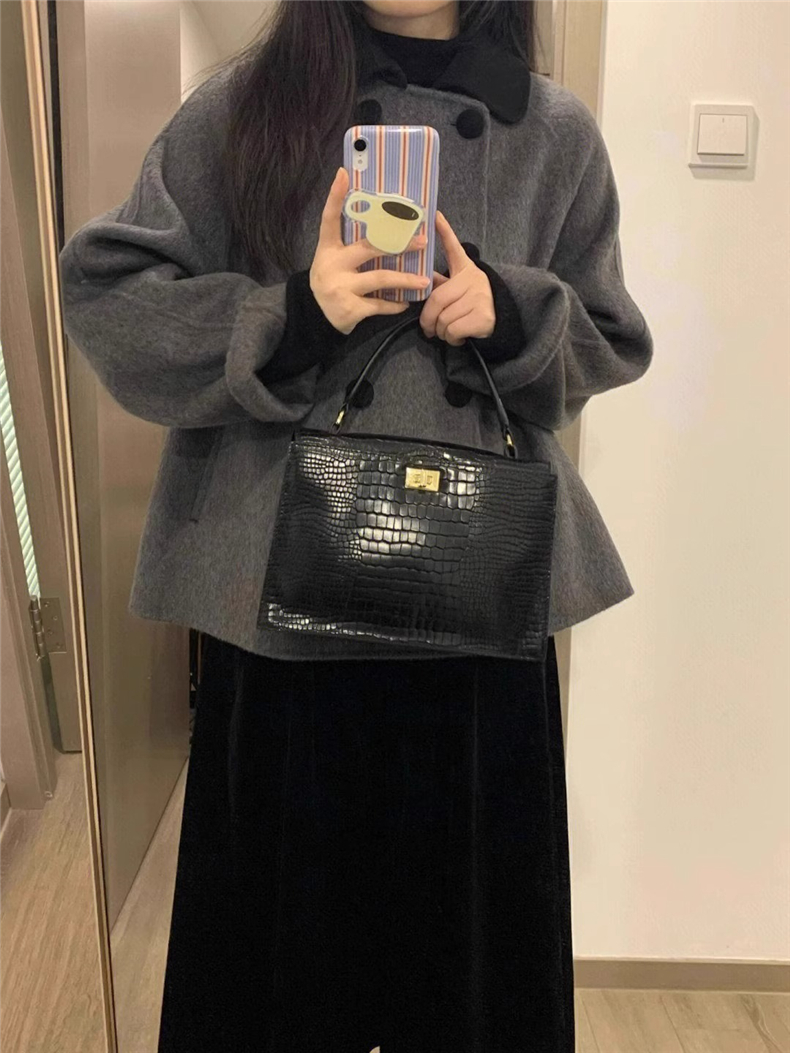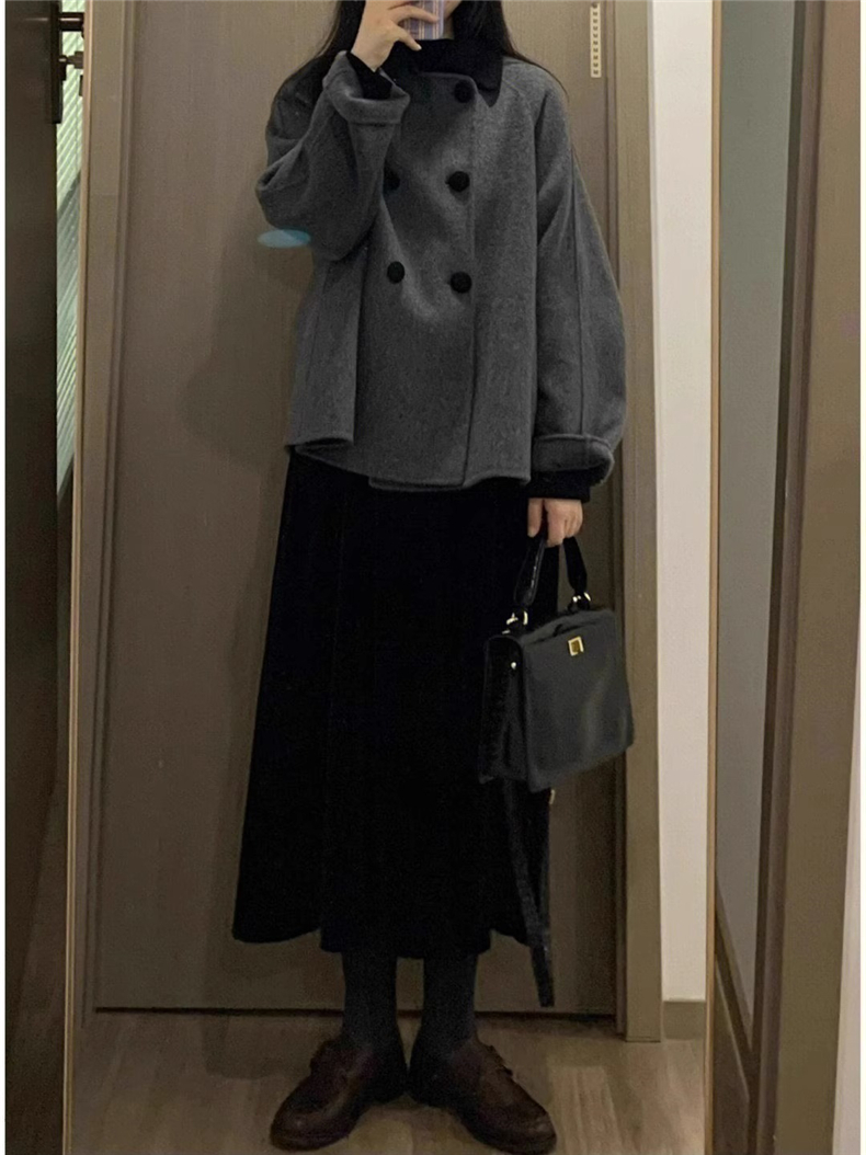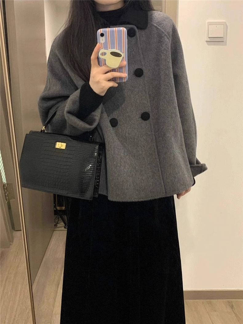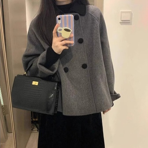 모직 코트 가을과 겨울 감각 작은 두꺼운 여성의 2024 새로운 헵번 스타일 그레이 짧은 모직 코트스토어 가기