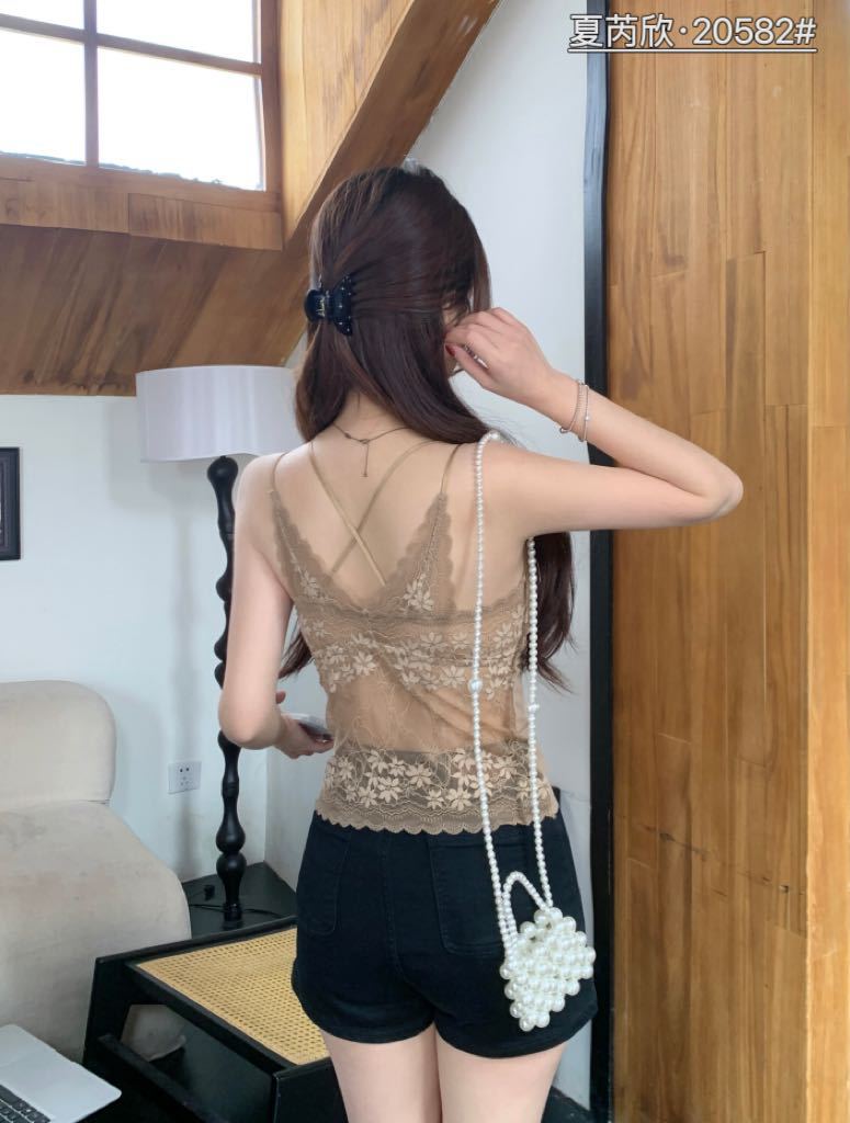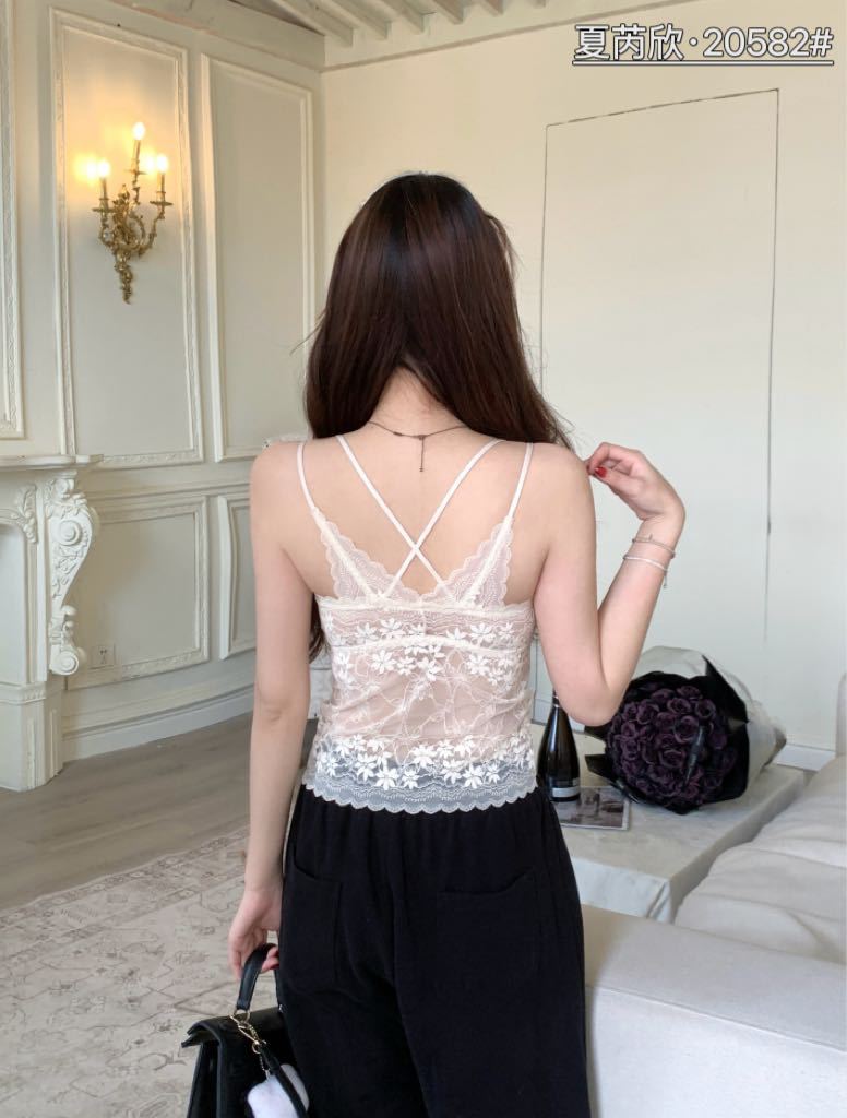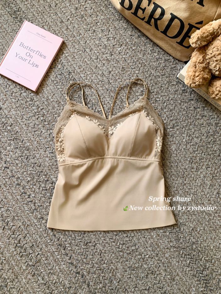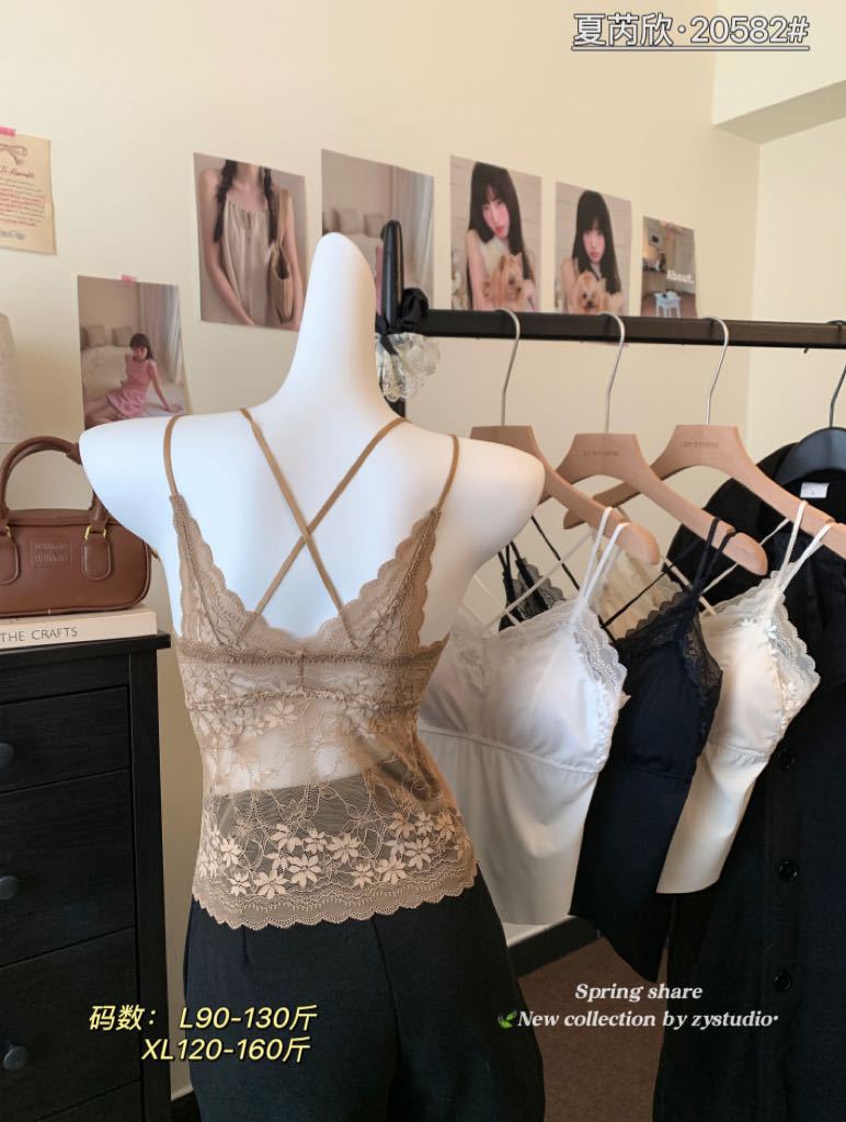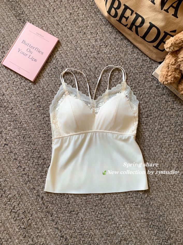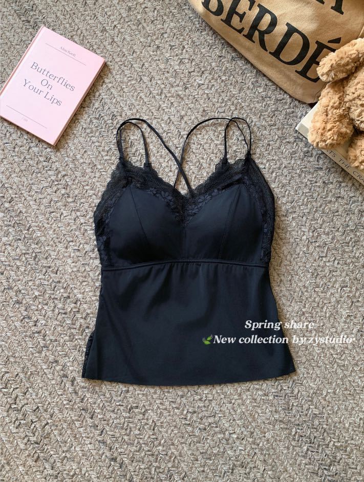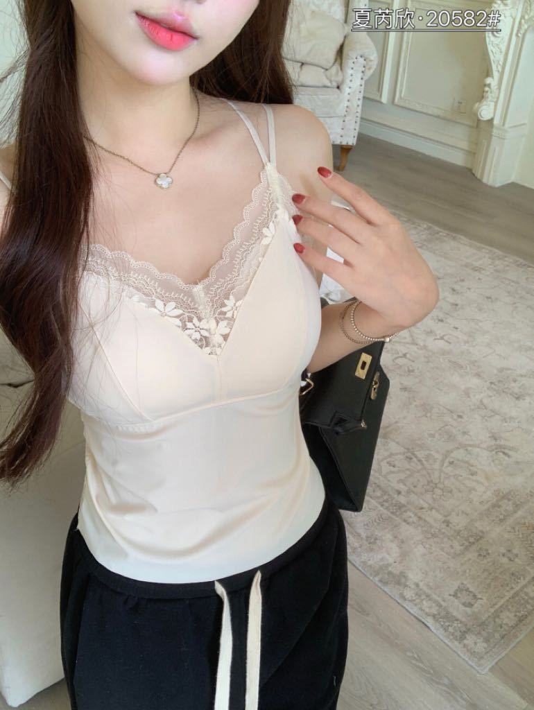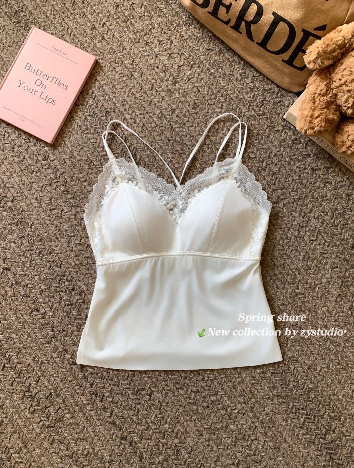 새로운 프랑스 스타일 섹시한 레이스 조끼 슬링 여성의 편안한 내부 아이스 실크 작은 슬링 탑 원피스 내부