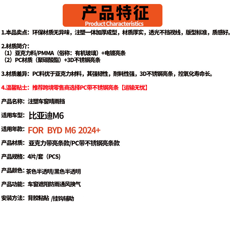 오른쪽 방향타 버전에 적합 BYD M6 비와 비 방패 비 눈썹 BYD M6 2024 창 바이저스토어 가기