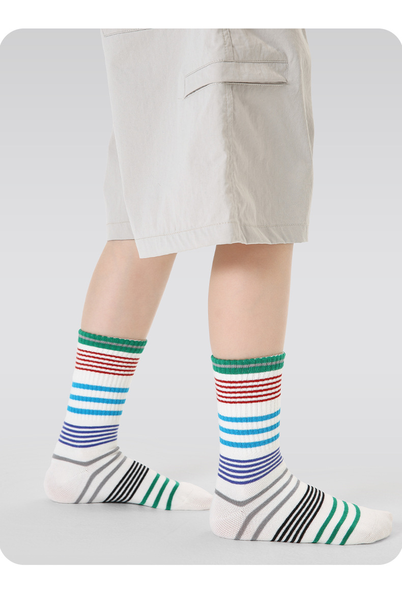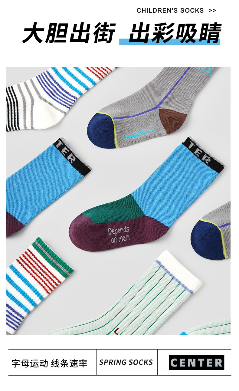어린이 양말 도매 2025 봄 편지 줄무늬 아기 양말 빗질면 뼈없는 스포츠 소년 양말스토어 가기
