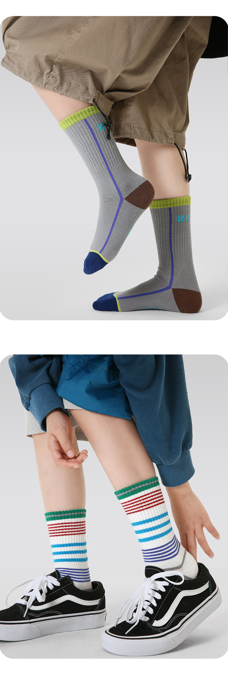 어린이 양말 도매 2025 봄 편지 줄무늬 아기 양말 빗질면 뼈없는 스포츠 소년 양말