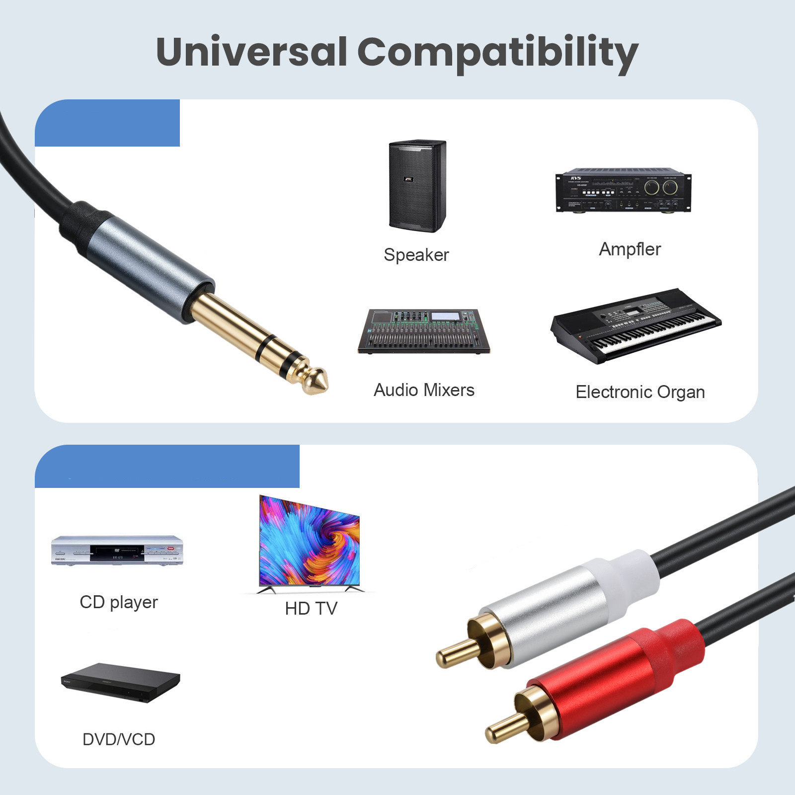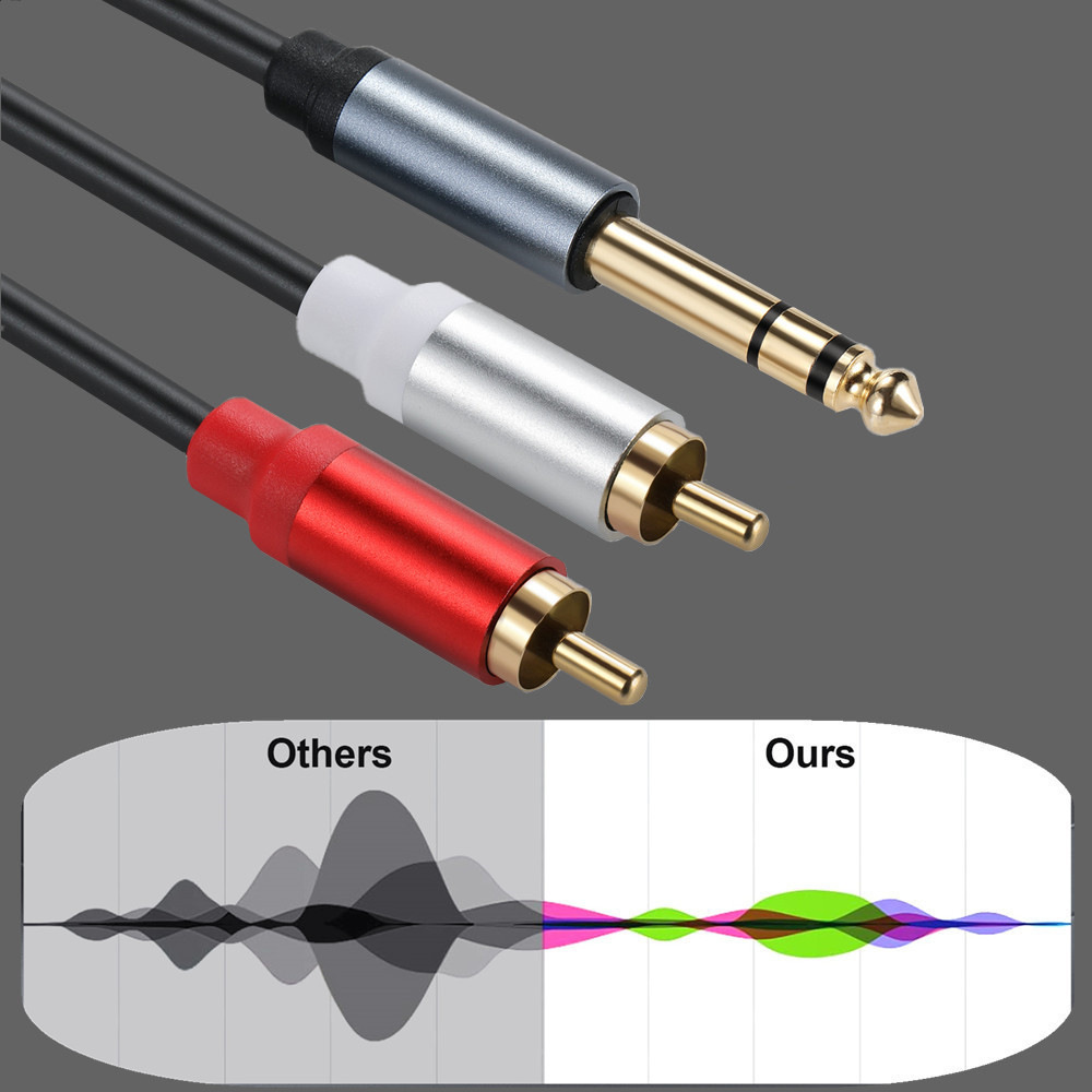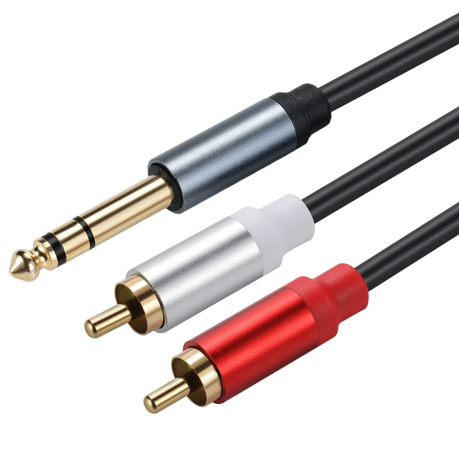 6.35mm Male Jack to 2 RCA Phono Male Jack Stereo Audio Y Splitter Cable 30cm/1.8m/3m;
