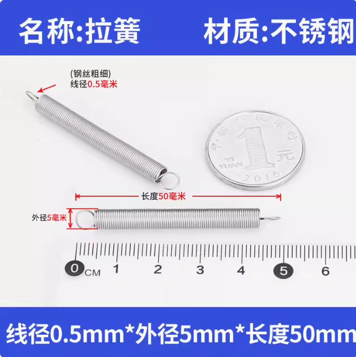 304 스테인레스 스틸 장력 봄 세대 후크 노란색 후크 스프링 오븐 장력 봄 맞춤형 긴장 봄
