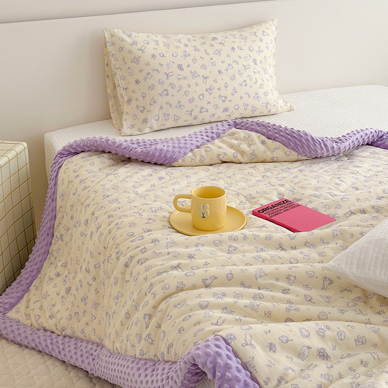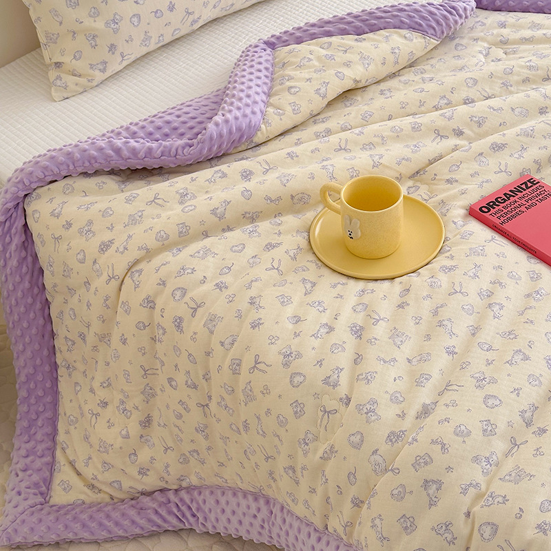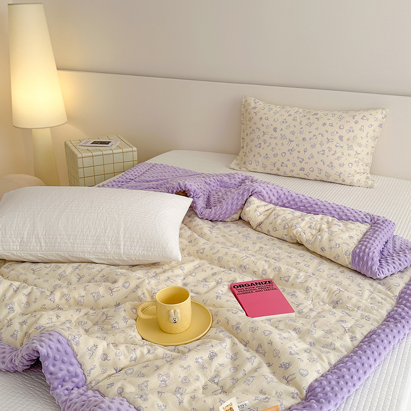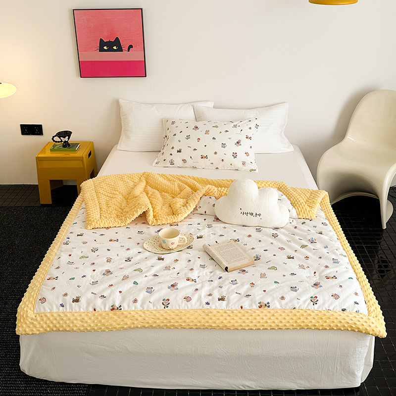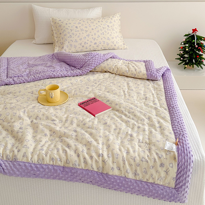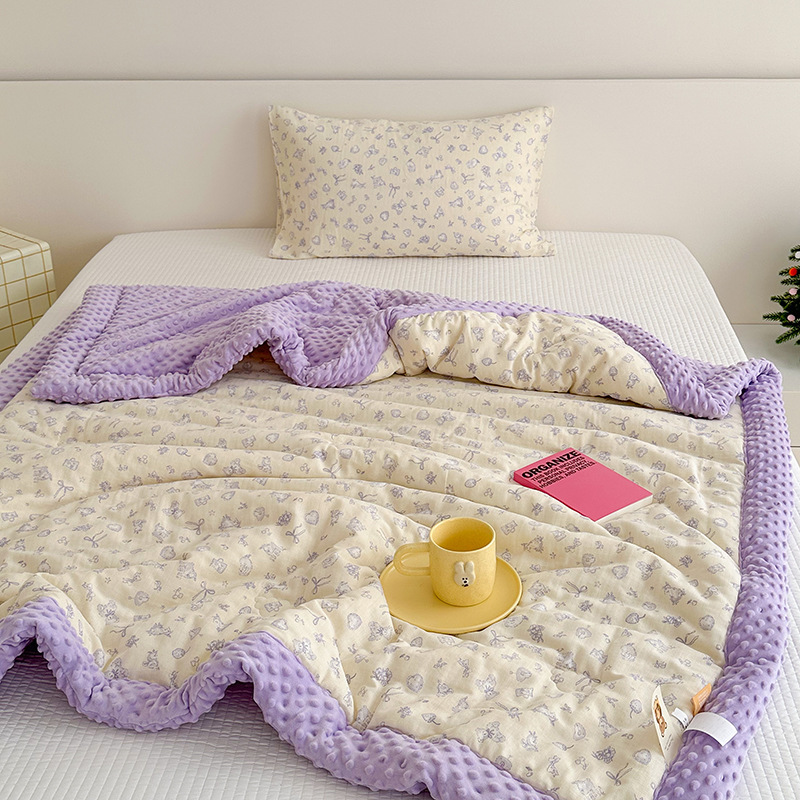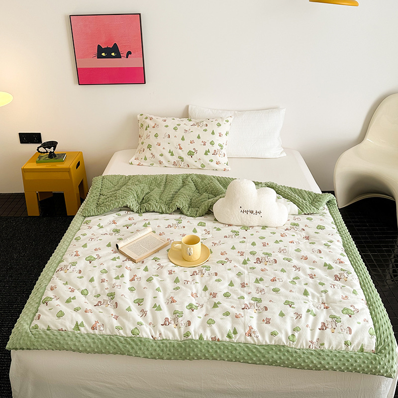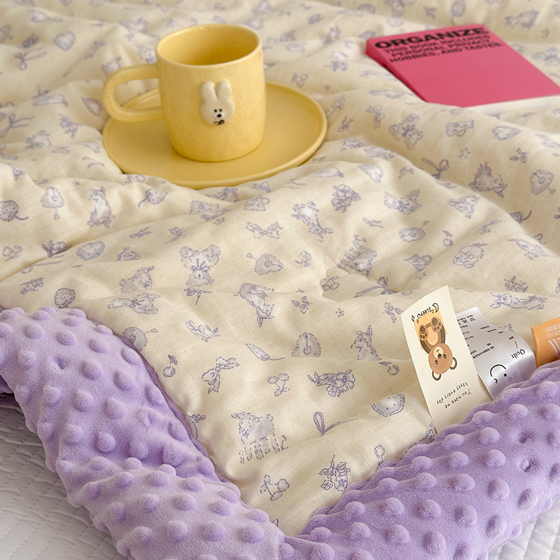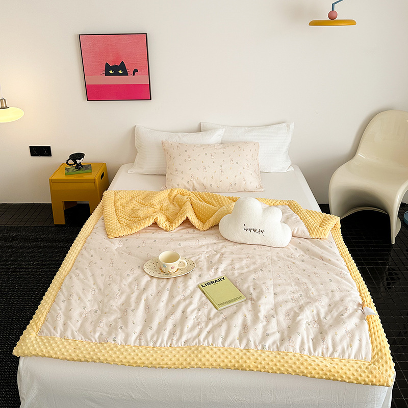 클래스 A 퓨어 코튼 더블 레이어 원사 손으로 포장 된 엣지 빈 벨벳 봄과 가을 퀼트 베이비 Pacifying 콩 담요 싱글 및 더블 어린이 가을 퀼트