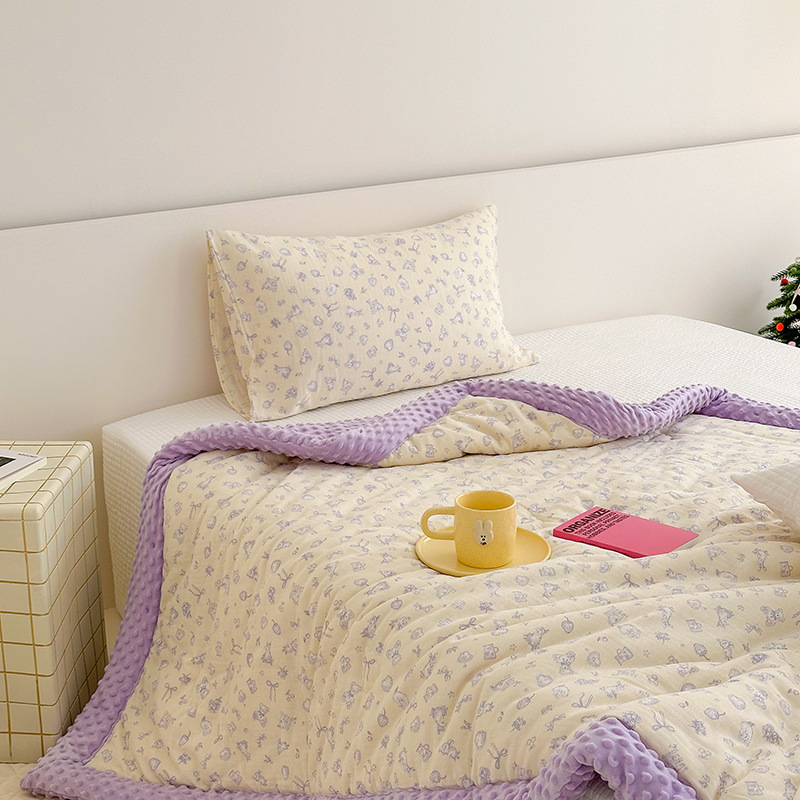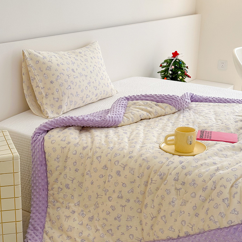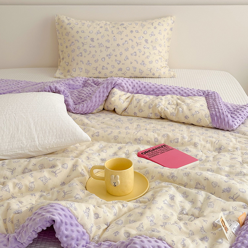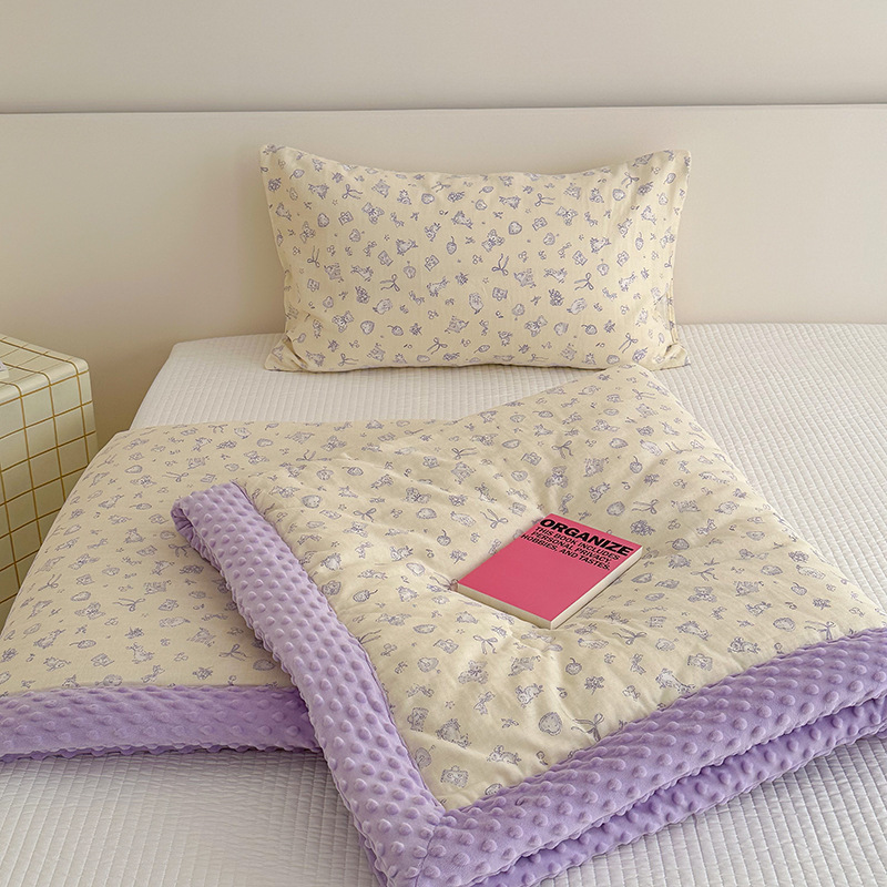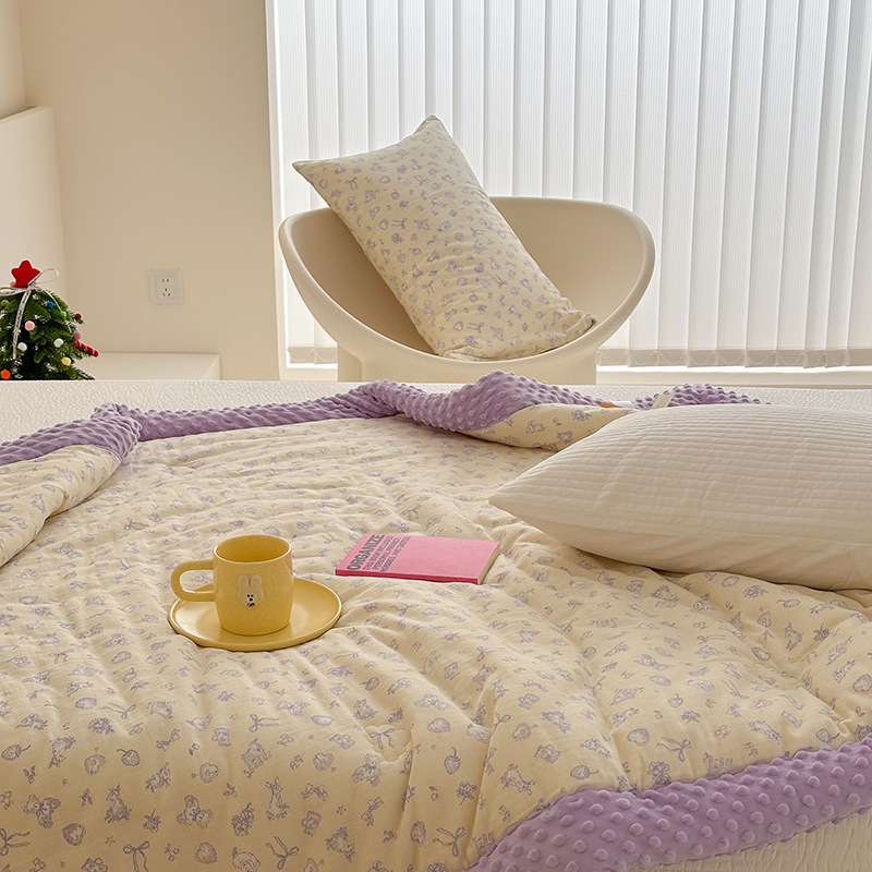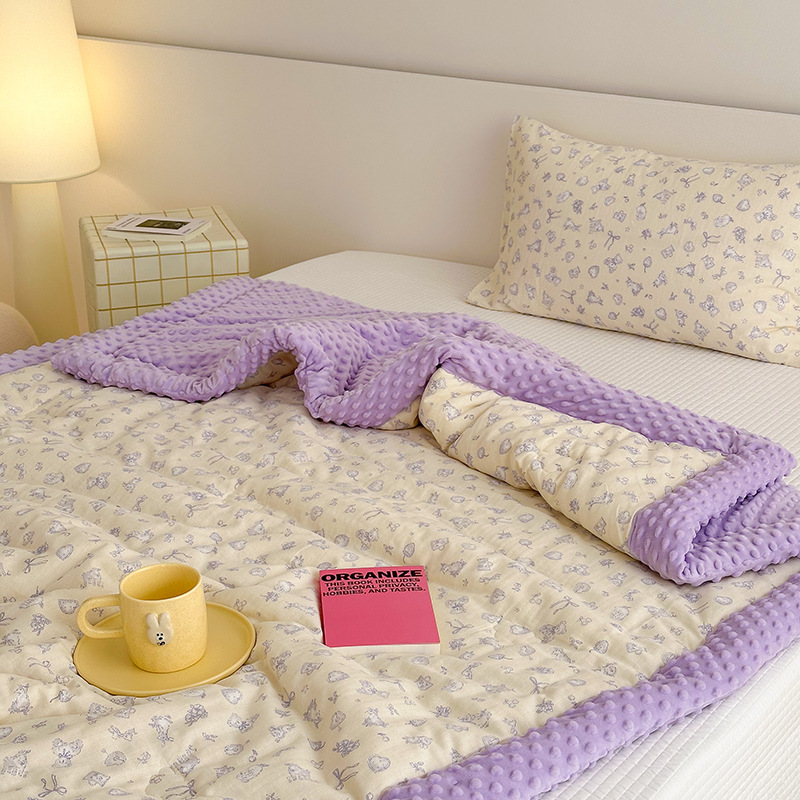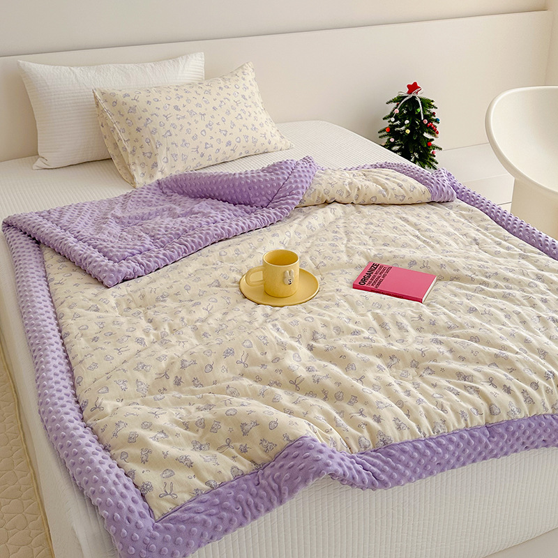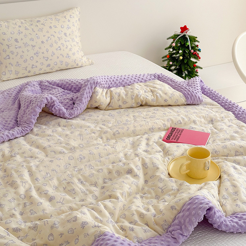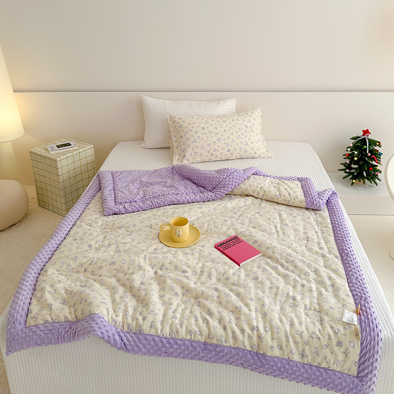 클래스 A 퓨어 코튼 더블 레이어 원사 손으로 포장 된 엣지 빈 벨벳 봄과 가을 퀼트 베이비 Pacifying 콩 담요 싱글 및 더블 어린이 가을 퀼트