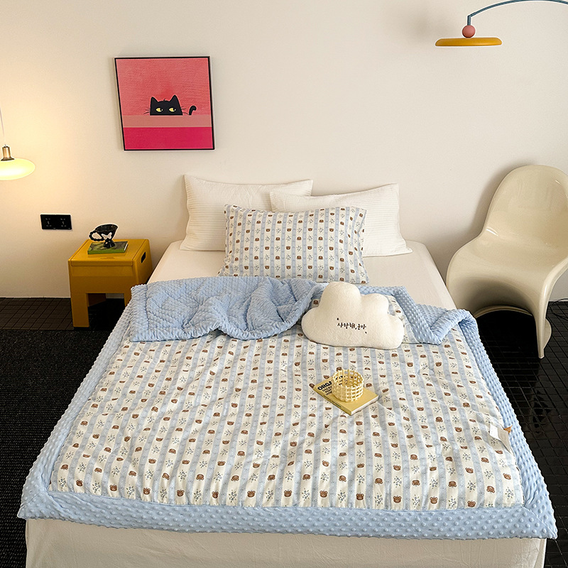 클래스 A 퓨어 코튼 더블 레이어 원사 손으로 포장 된 엣지 빈 벨벳 봄과 가을 퀼트 베이비 Pacifying 콩 담요 싱글 및 더블 어린이 가을 퀼트스토어 가기