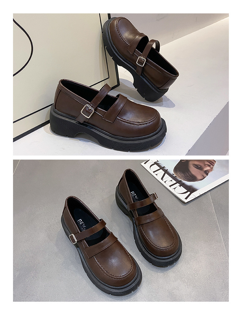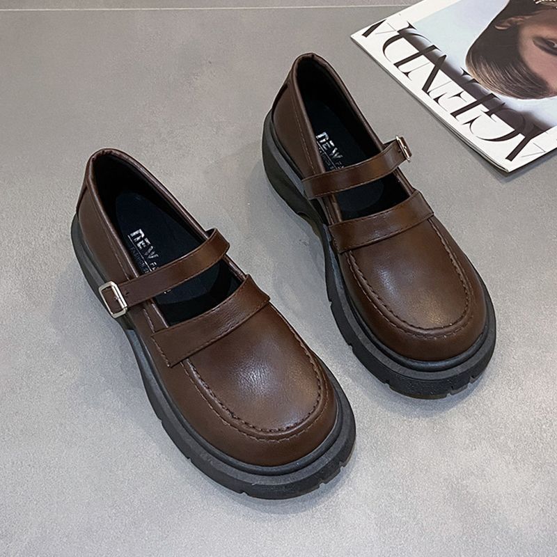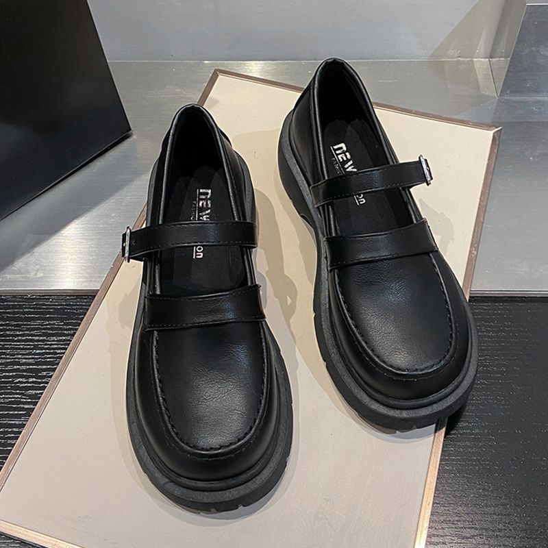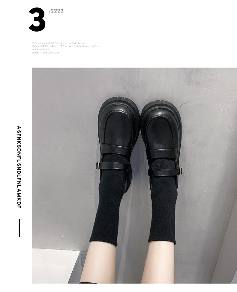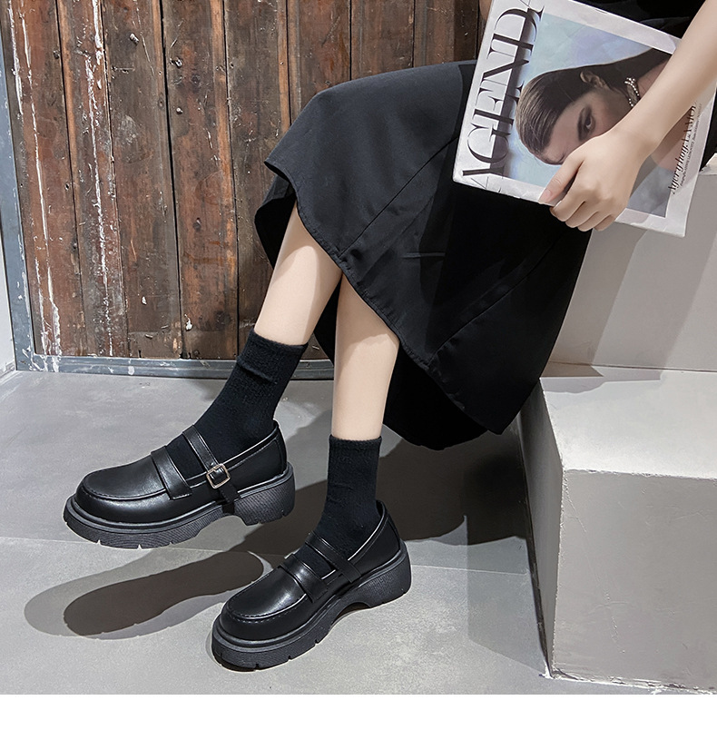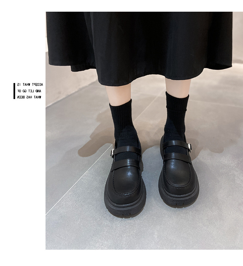 영국 작은 가죽 신발 여성 겨울 얇은 원피스 프랑스 두꺼운 바닥 블랙 빈티지 메리 제인 신발 Jk 일본 스타일스토어 가기