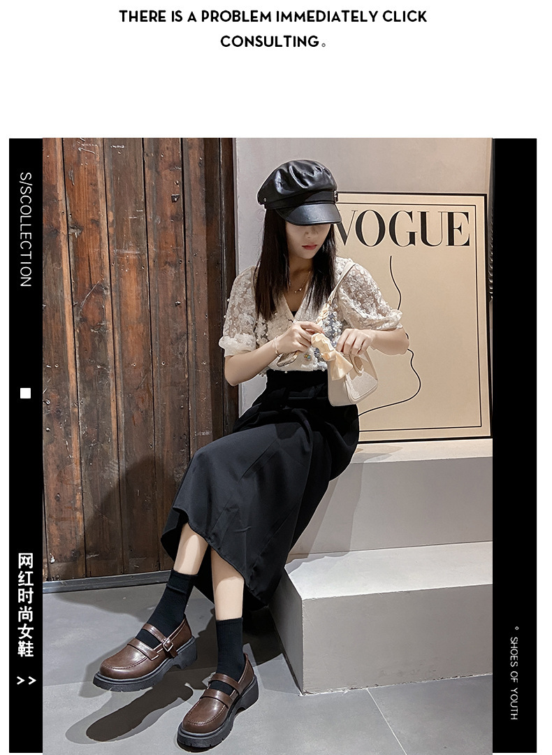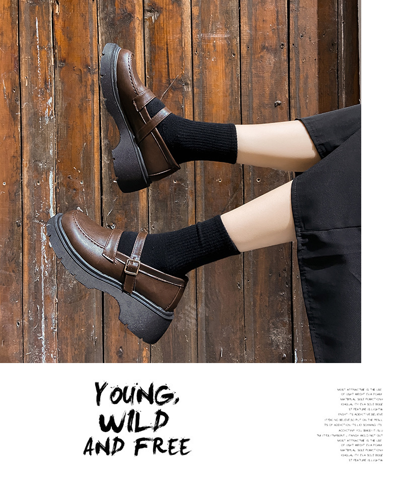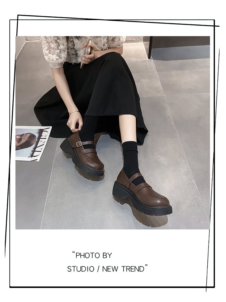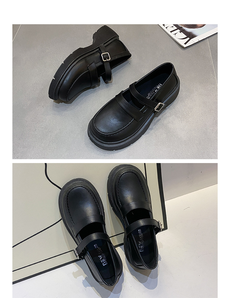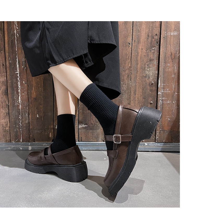 영국 작은 가죽 신발 여성 겨울 얇은 원피스 프랑스 두꺼운 바닥 블랙 빈티지 메리 제인 신발 Jk 일본 스타일스토어 가기