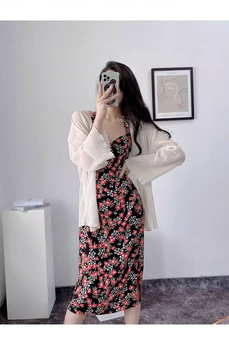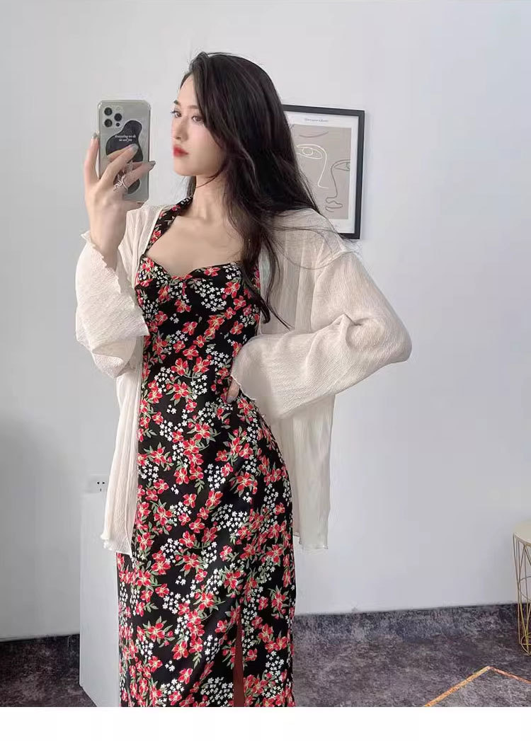 할로우 아웃 초박형 봄과 가을 긴팔 카디건 여성의 얇은 빛 주름 쉬폰 아우터 숄 블라우스 탑 스몰 코트스토어 가기