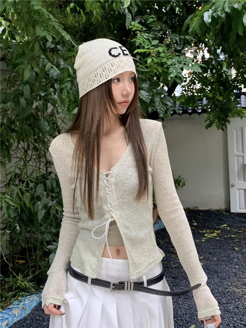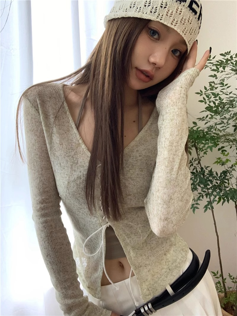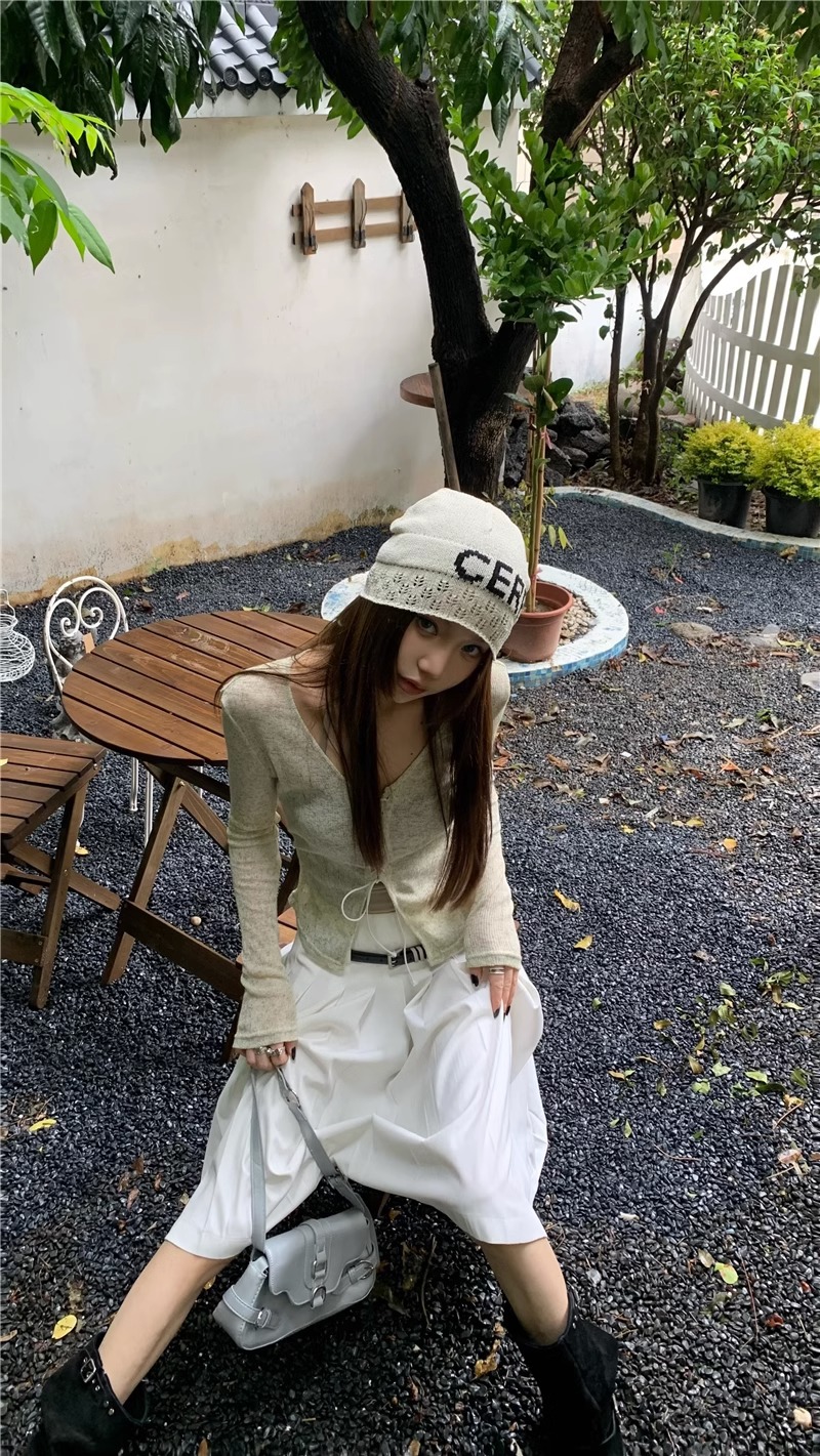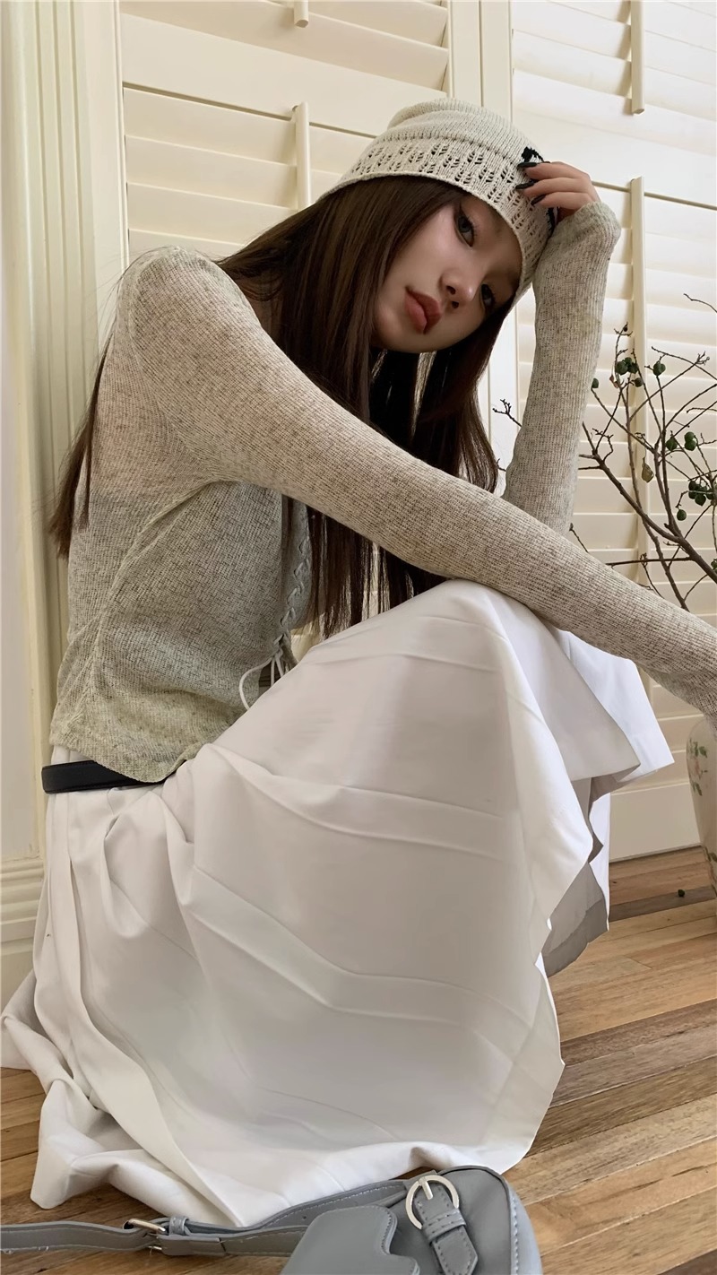패션 투피스 탑 슬링 스파이스 소녀 긴팔 니트웨어 여성용 봄과 가을 새로운 슬림형 스트랩 세트스토어 가기