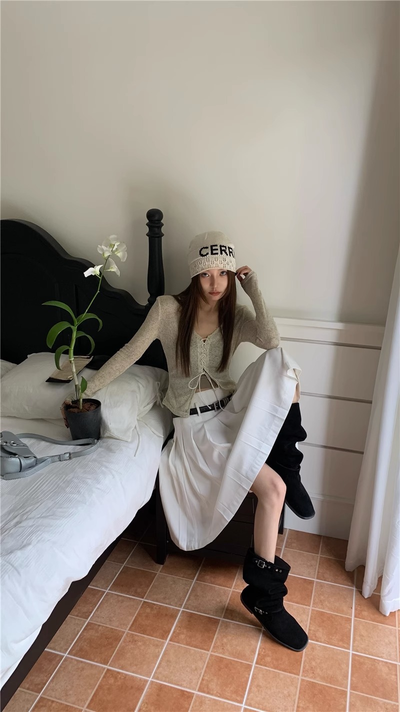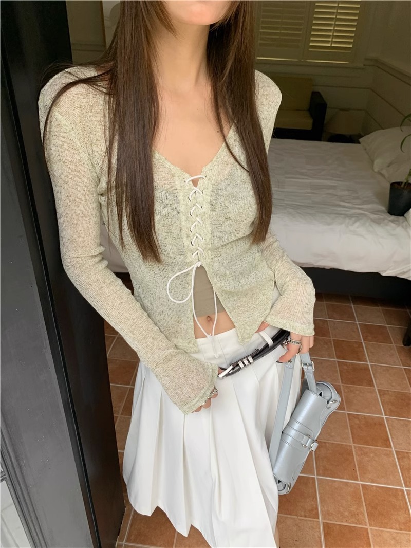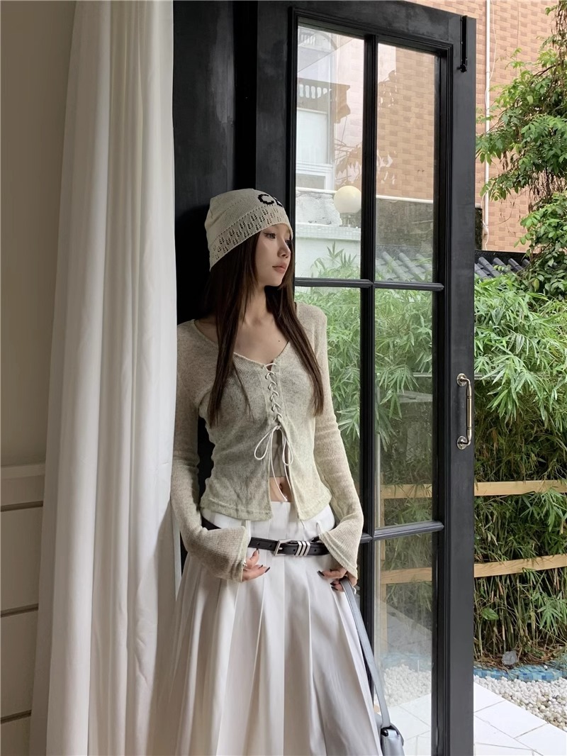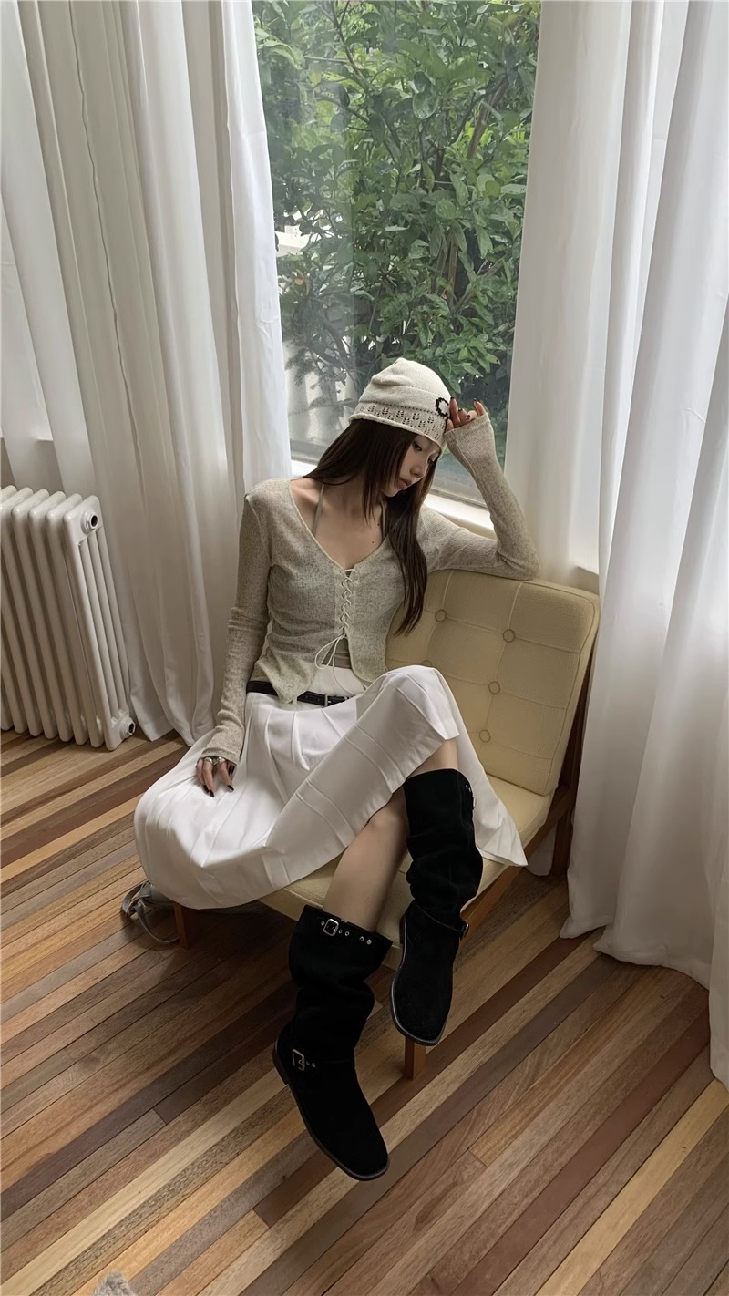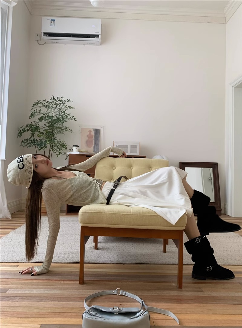 패션 투피스 탑 슬링 스파이스 소녀 긴팔 니트웨어 여성용 봄과 가을 새로운 슬림형 스트랩 세트스토어 가기