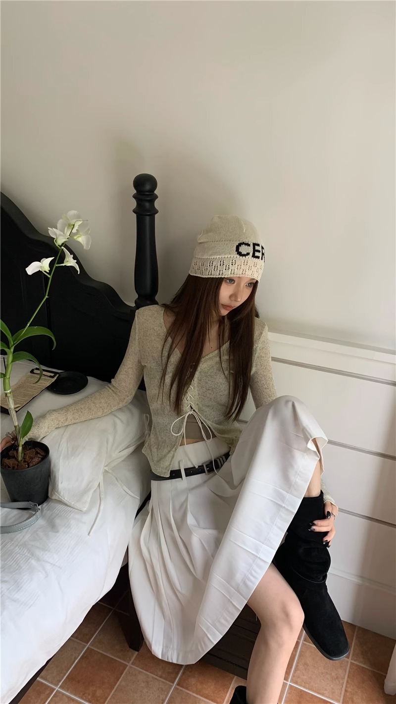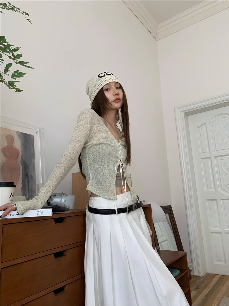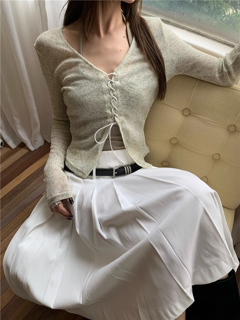 패션 투피스 탑 슬링 스파이스 소녀 긴팔 니트웨어 여성용 봄과 가을 새로운 슬림형 스트랩 세트