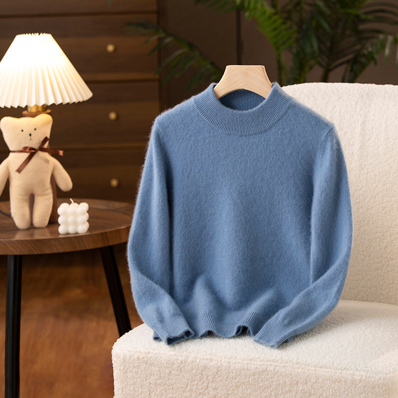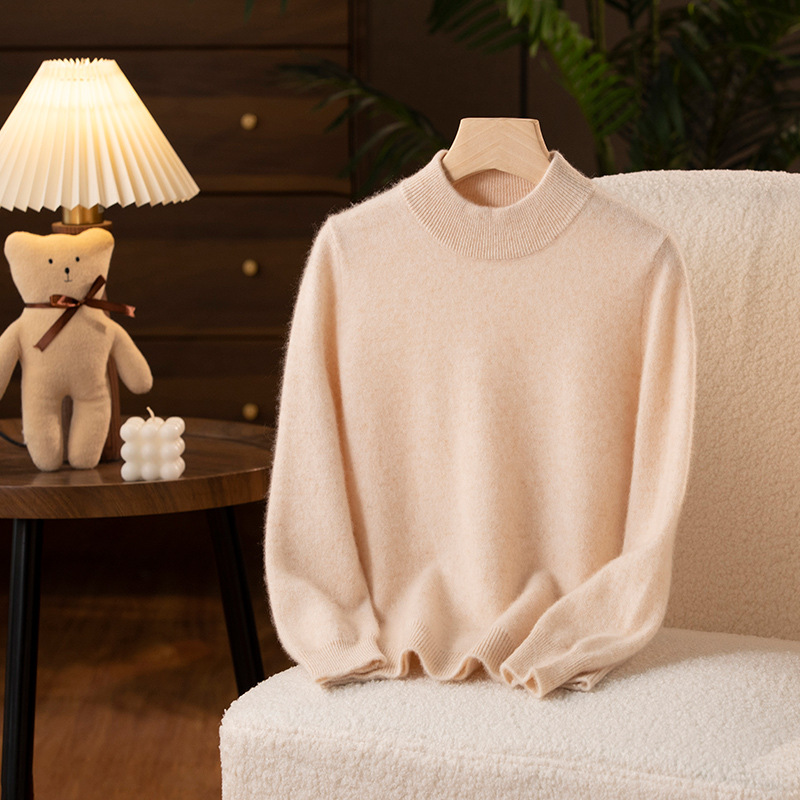 봄가을용 100% 울 어린이 하프 터틀넥 기본 스웨터 남녀공용 단색 긴팔 베이스 울 스웨터스토어 가기