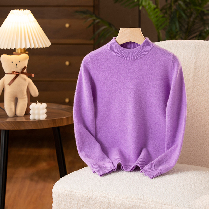 봄가을용 100% 울 어린이 하프 터틀넥 기본 스웨터 남녀공용 단색 긴팔 베이스 울 스웨터