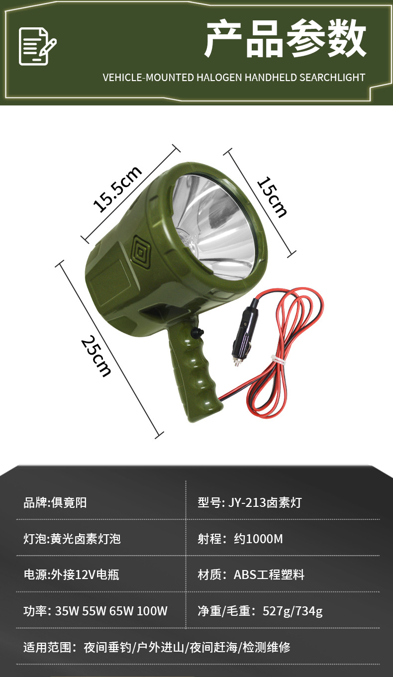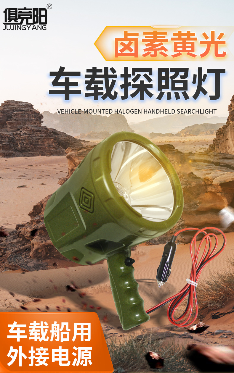 노란색 빛 할로겐 램프 휴대용 탐조등 외부 12V 파워 스포트라이트 장거리 자동차 손전등 해양 조명