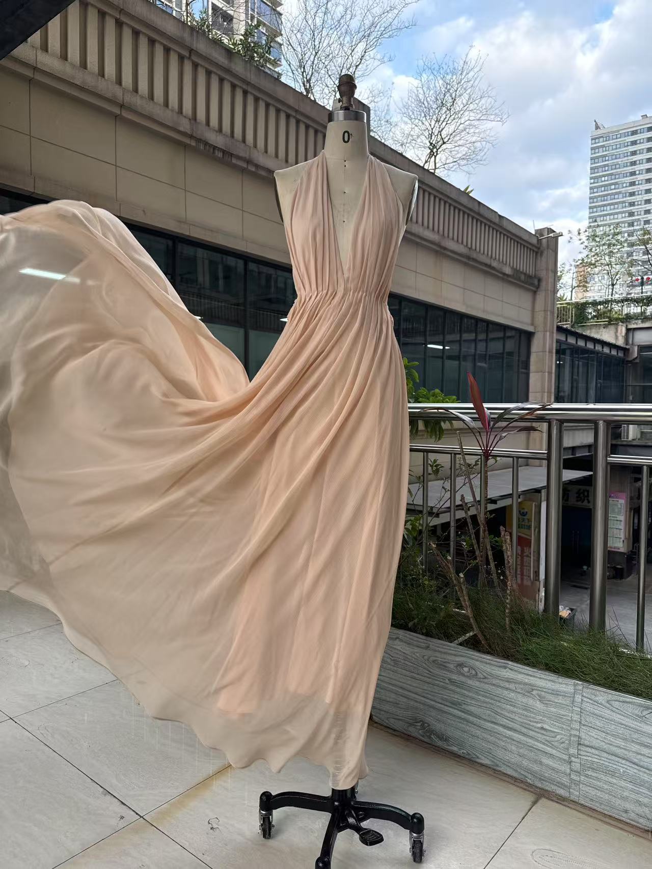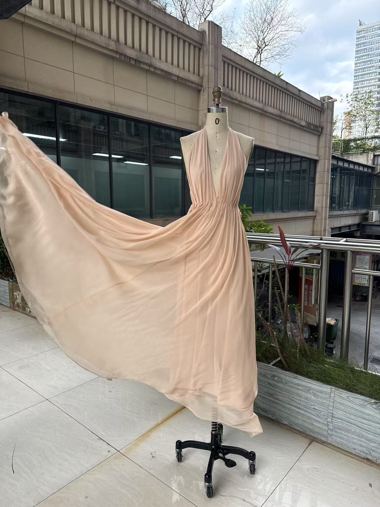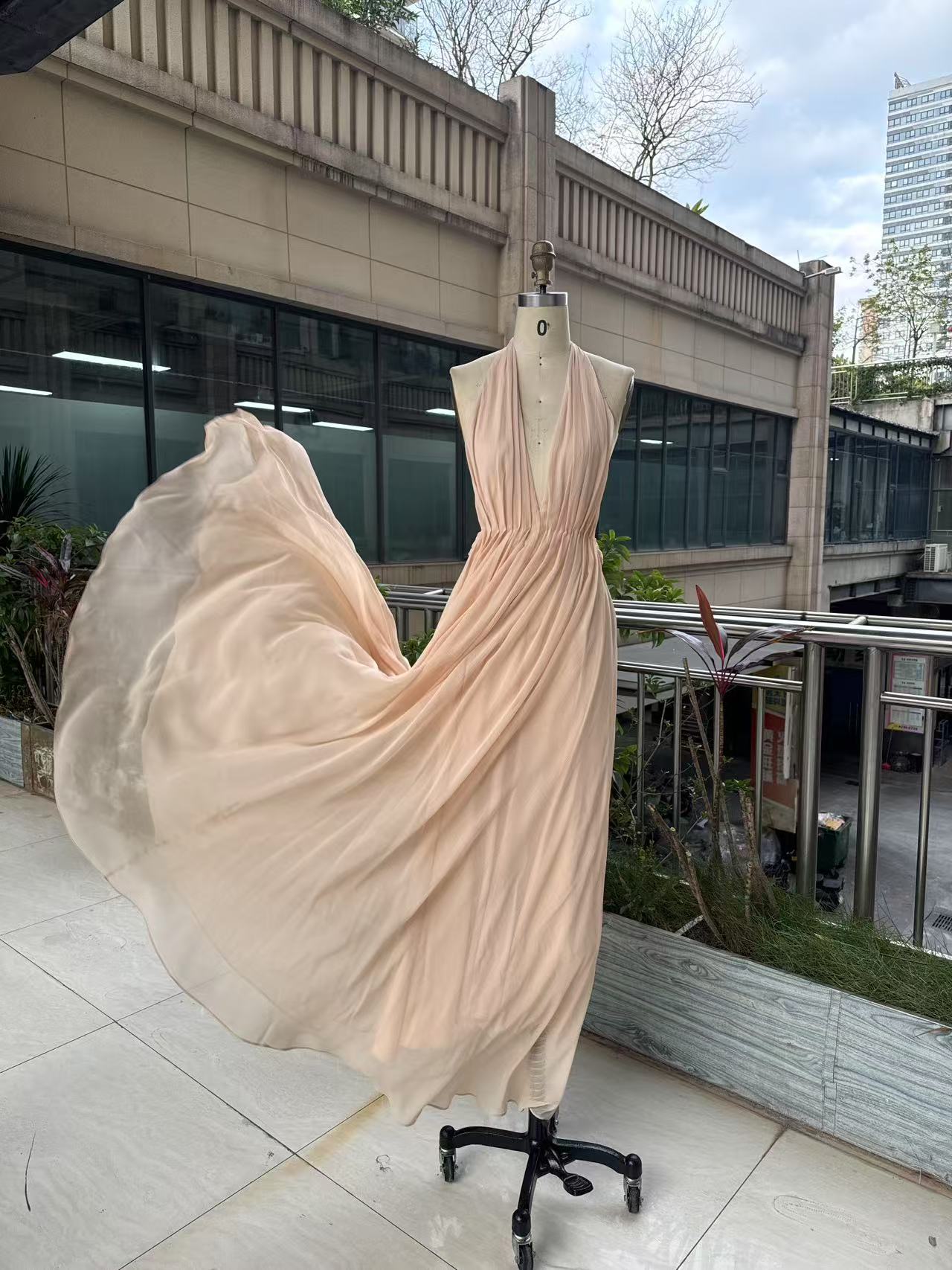 프랑스 섹시한 백리스 딥 V 사교계 목 교수형 원피스 슈퍼 요정 우아한 휴일 원피스 국경 간 해변스토어 가기