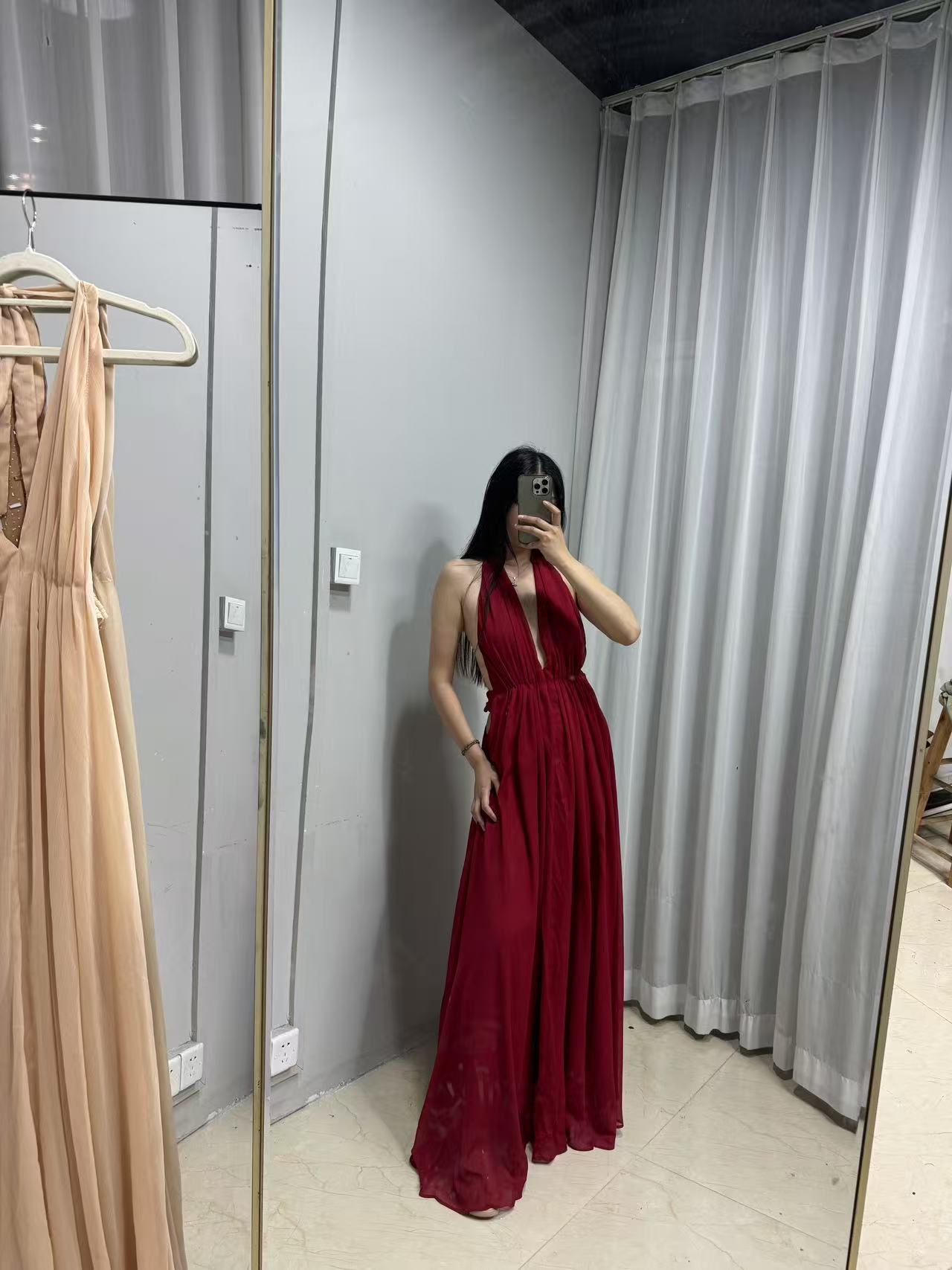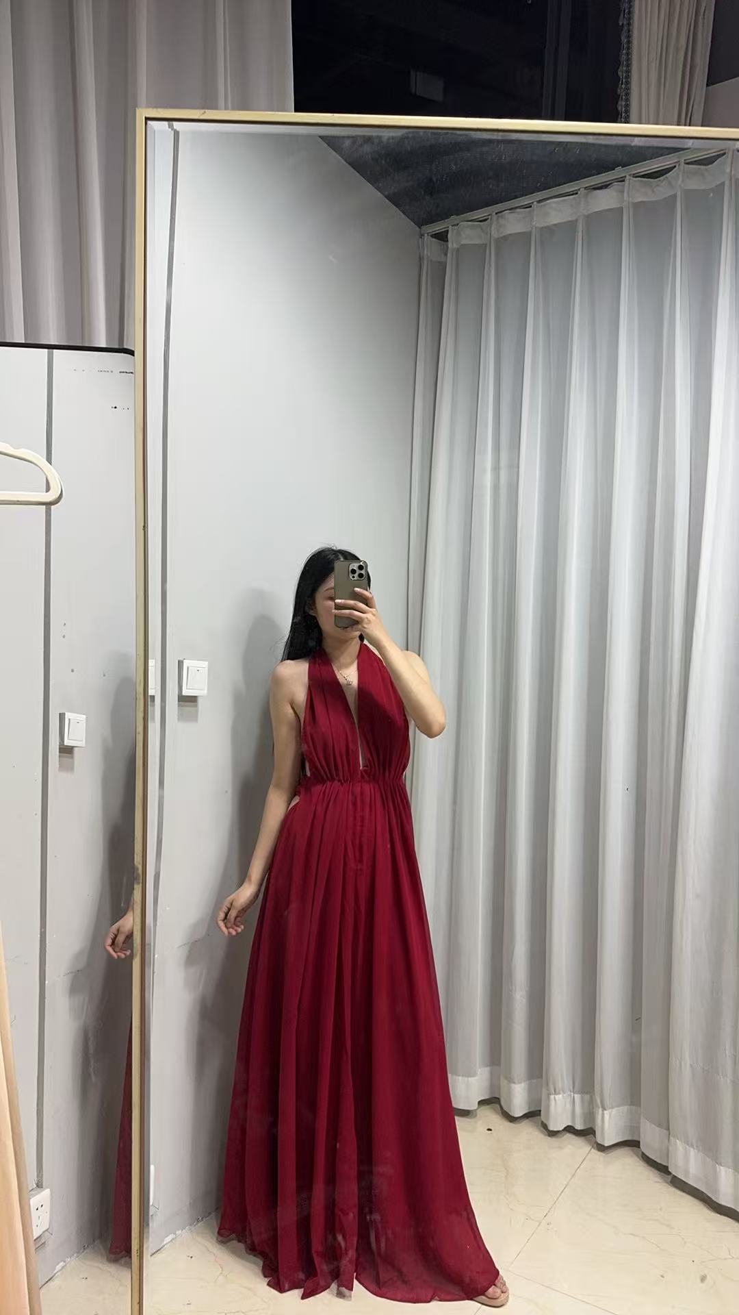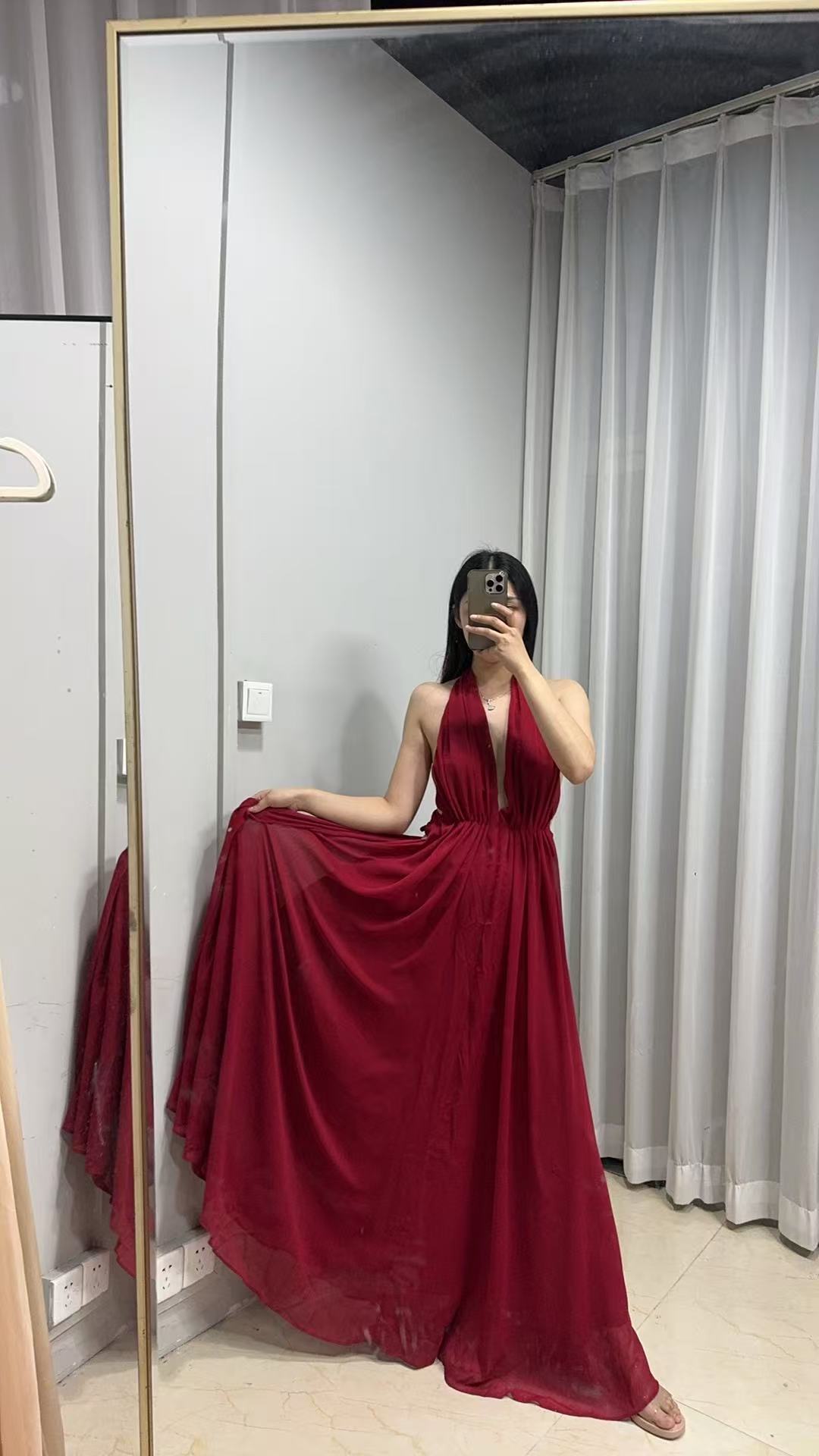 프랑스 섹시한 백리스 딥 V 사교계 목 교수형 원피스 슈퍼 요정 우아한 휴일 원피스 국경 간 해변스토어 가기