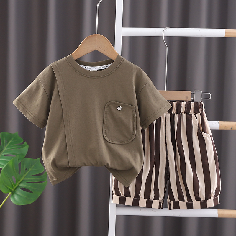 어린이 의류 여름 2025 새로운 소년 패션 세트 짧은 소매 투피스 세트 1-45 세 한국 아기 옷 대외 무역
