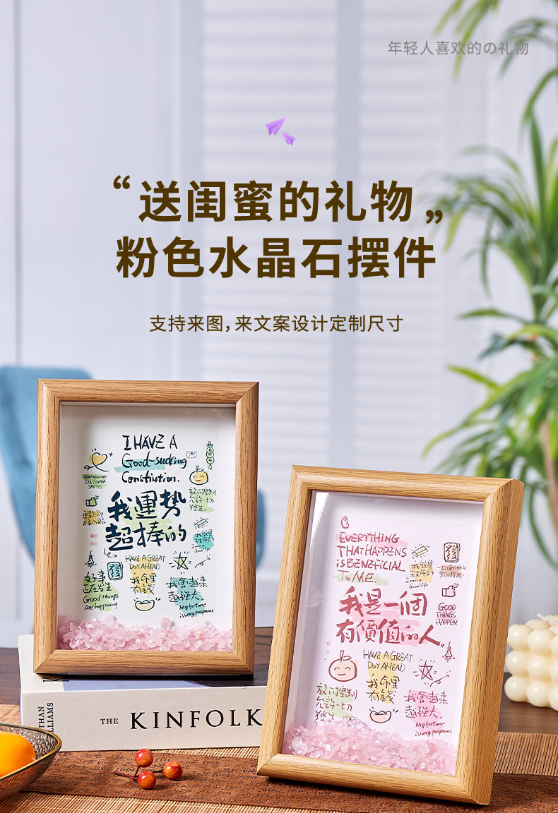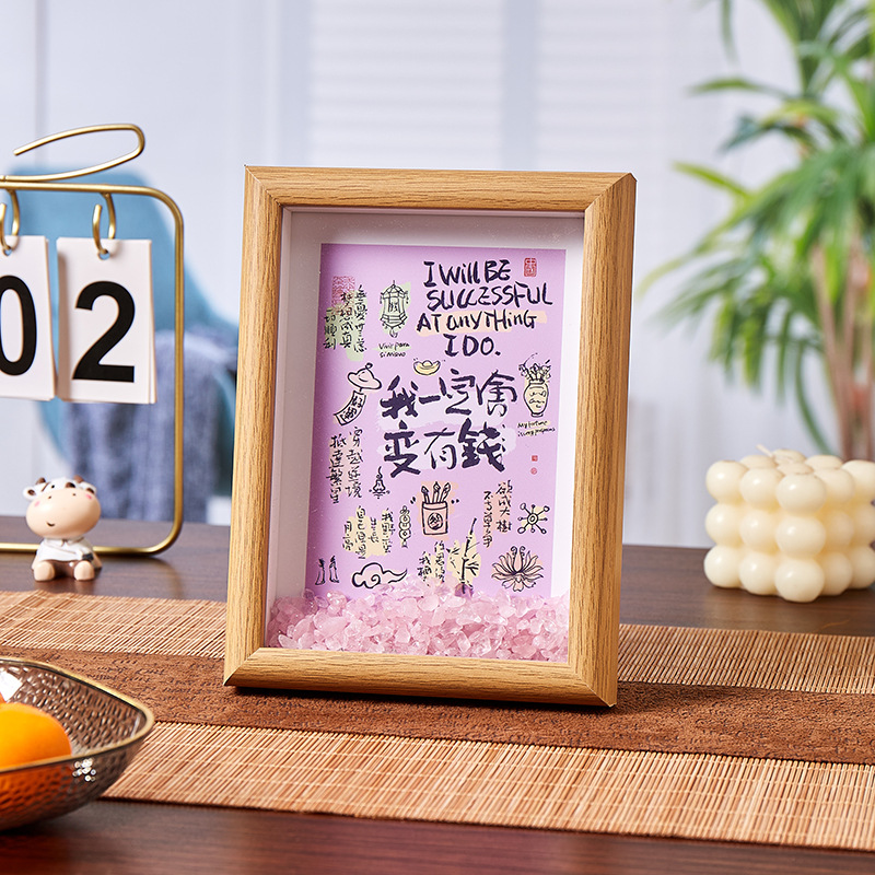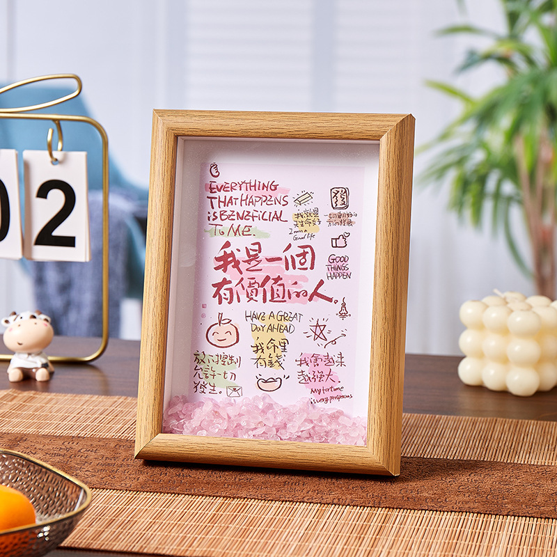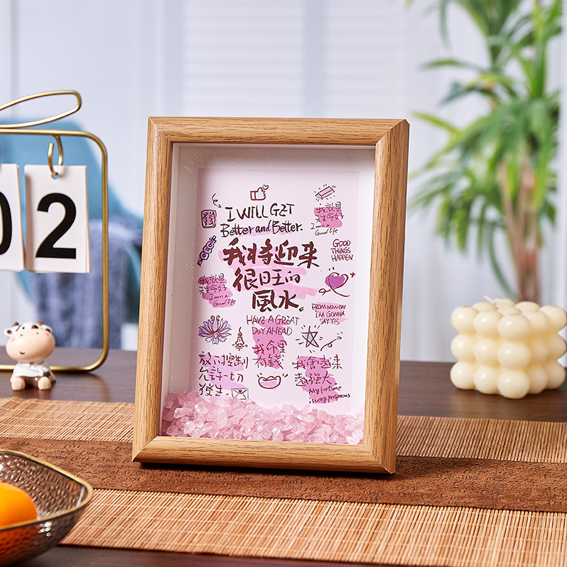 핑크 크리스탈 스톤 액자 장식품 거실 침실 행운을 불러오는 고급스러운 로맨틱 에너지 장식 선물