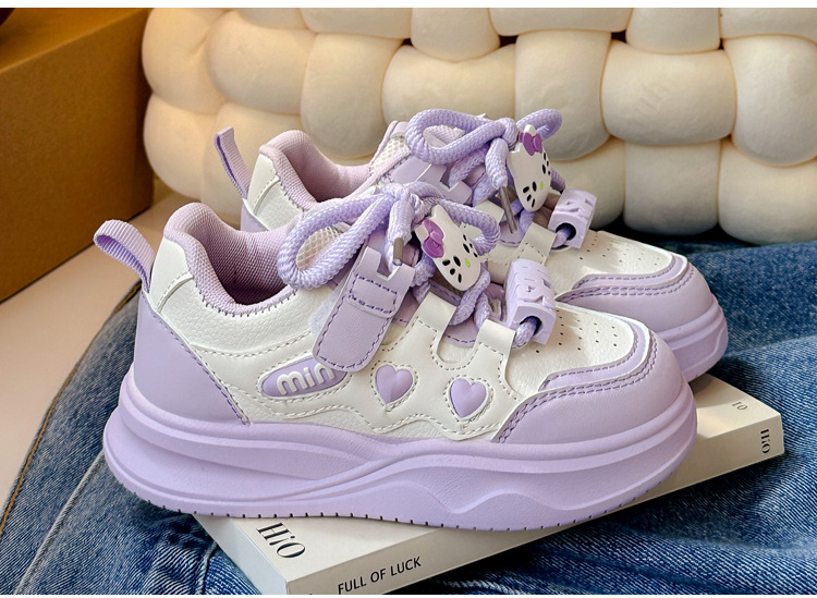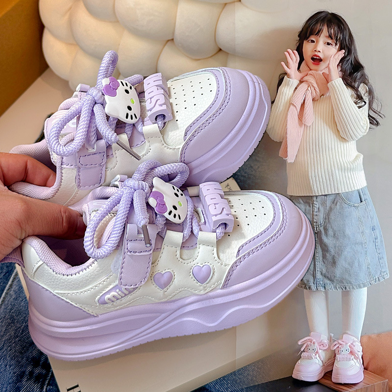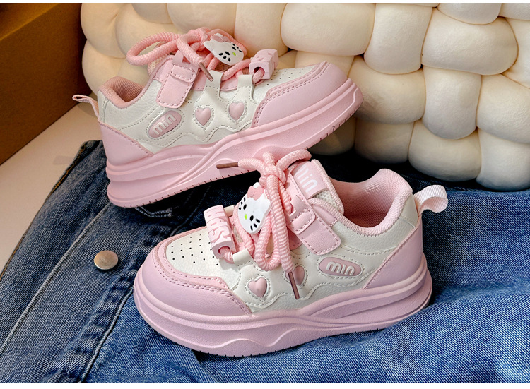 소녀 스니커즈 2025 봄과 가을 새 가죽 싱글 릿 올매치 만화 어린이 운동화 공주 스타일 여성 보물 신발스토어 가기