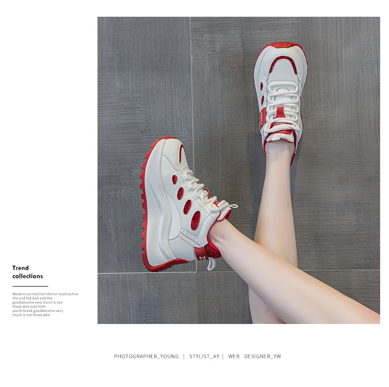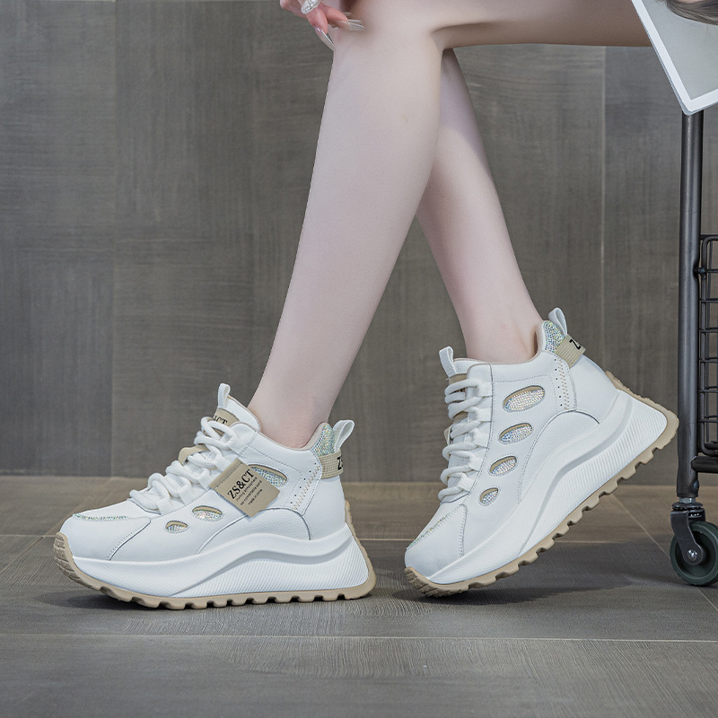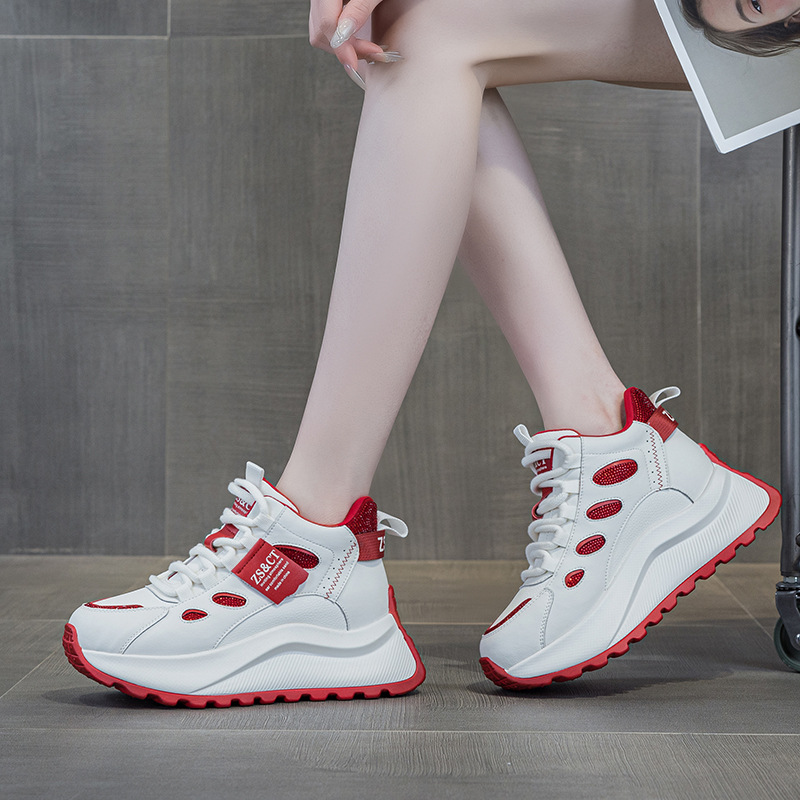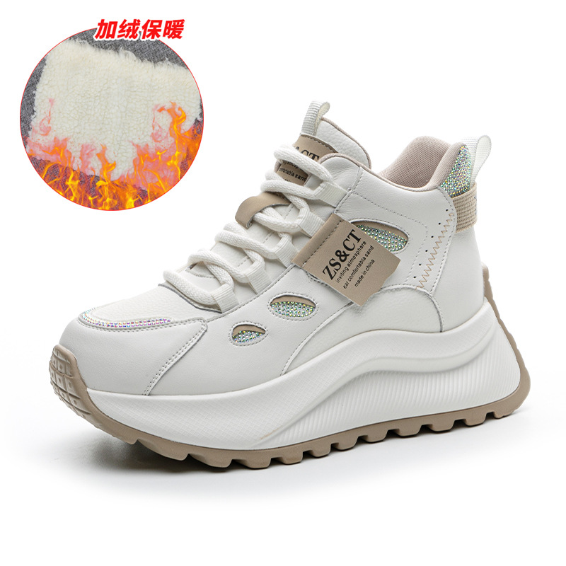 9972 정품 가죽 하이 탑 신발 여성 2025 새로운 폭발 올 매치 가을 및 겨울 두꺼운 스포츠 캐주얼 신발