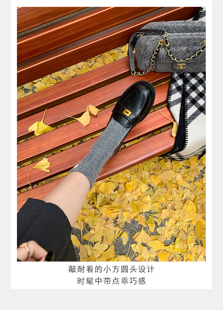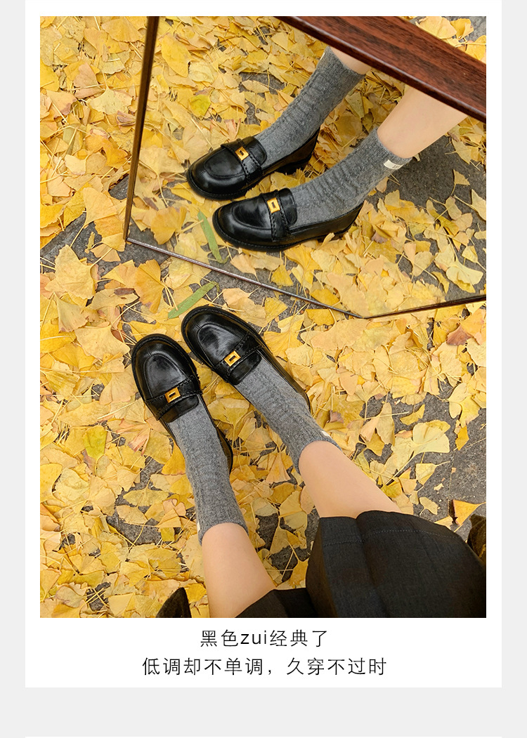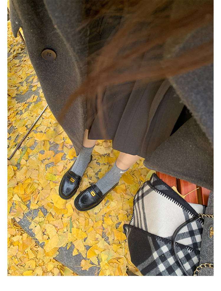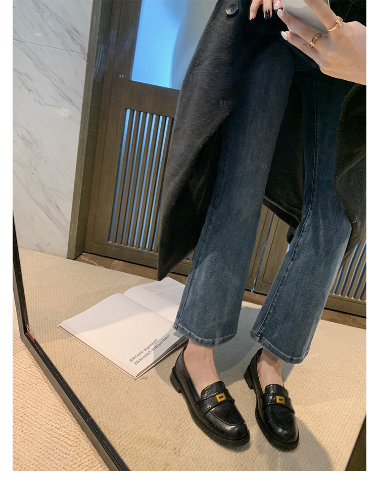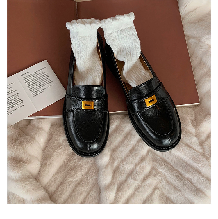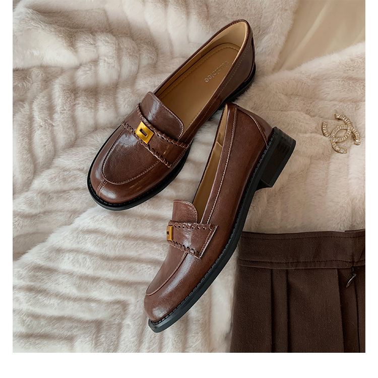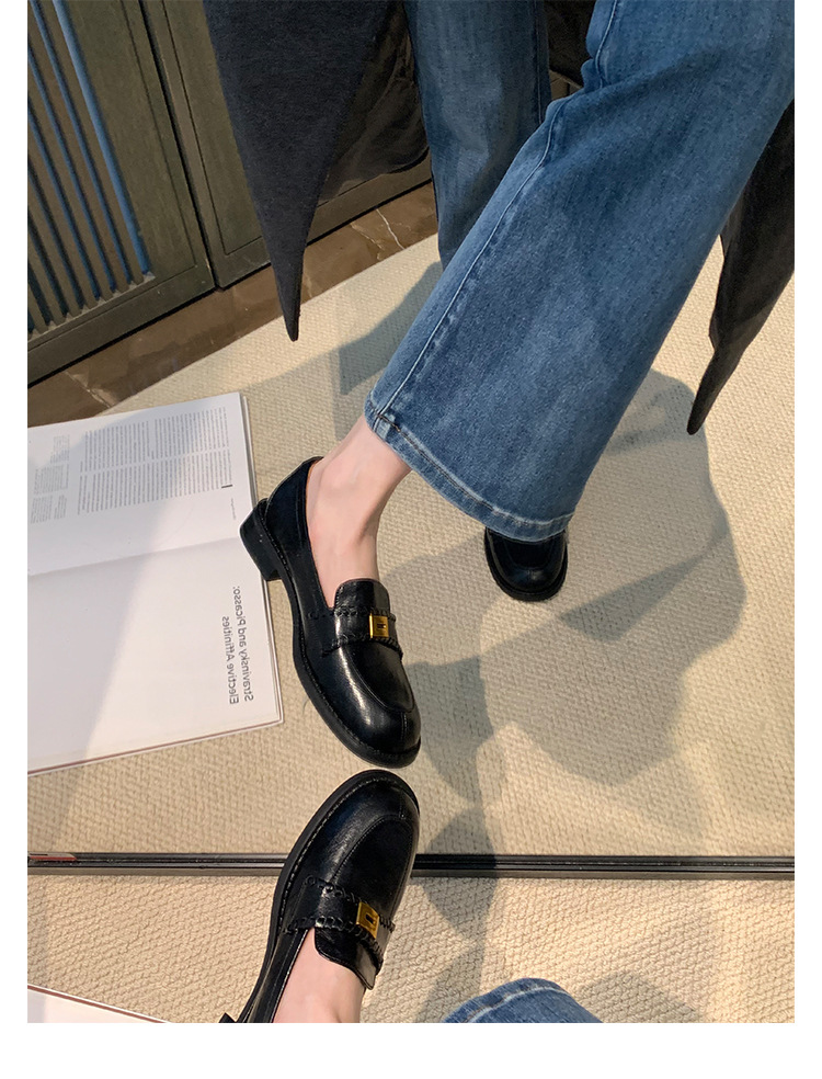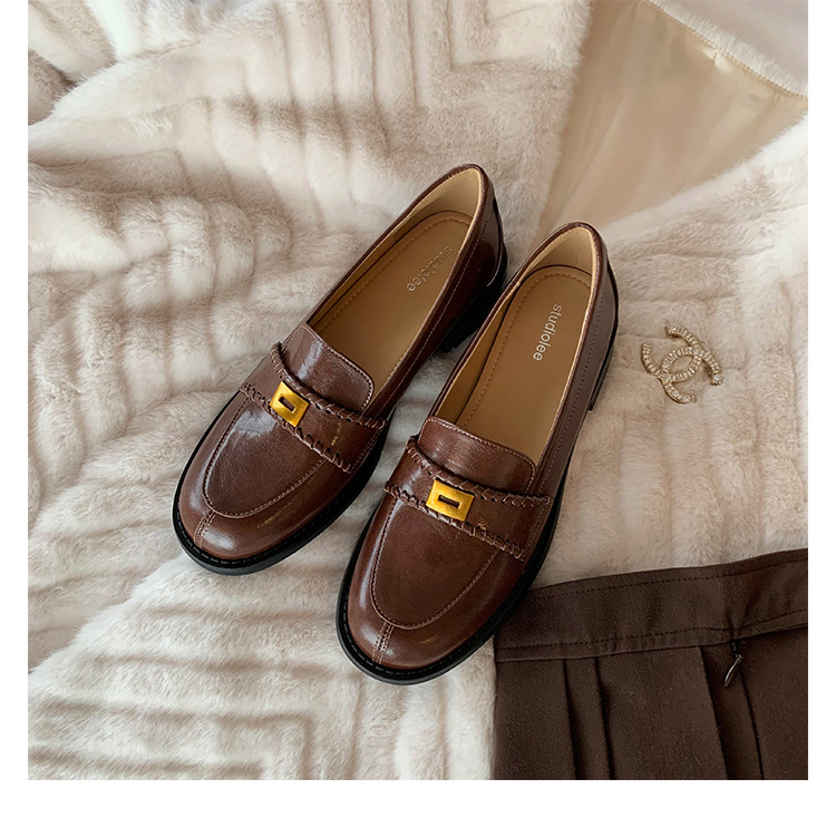 주삼촌님의~ 영국풍 레트로 가죽 로퍼 여성용 낮은 굽 다용도 편안한 얕은 굽 라운드 토 슬립온 로퍼