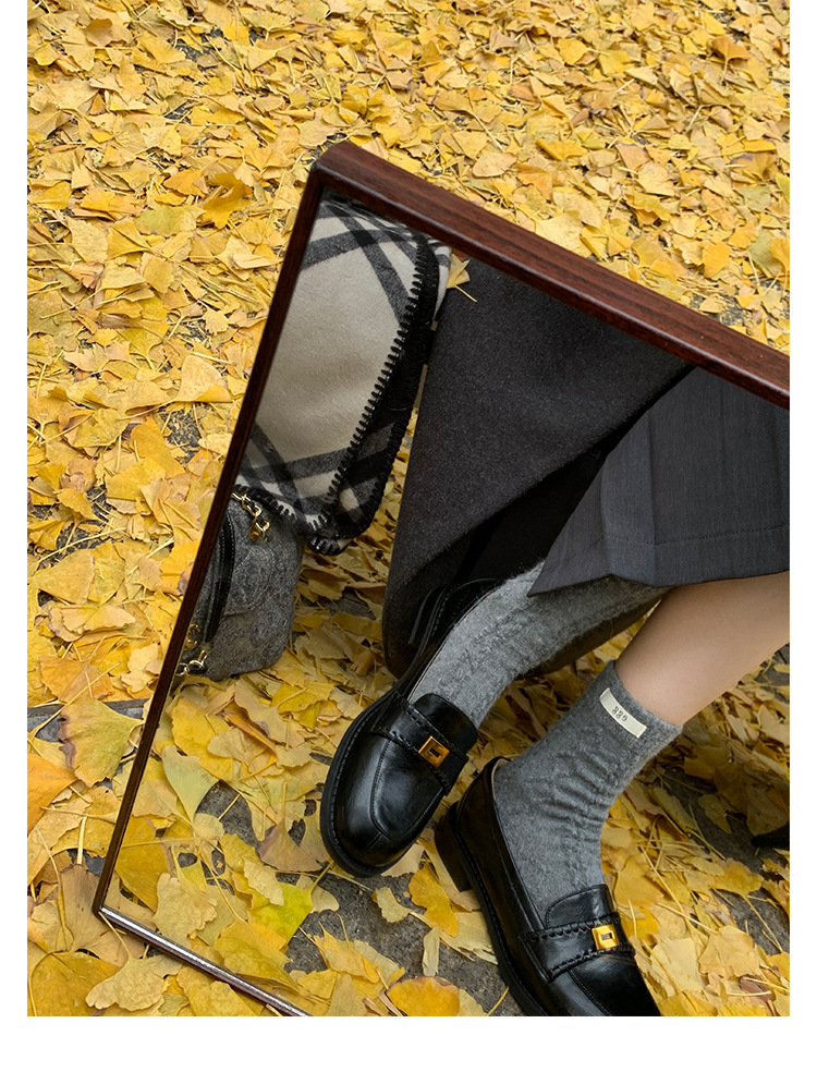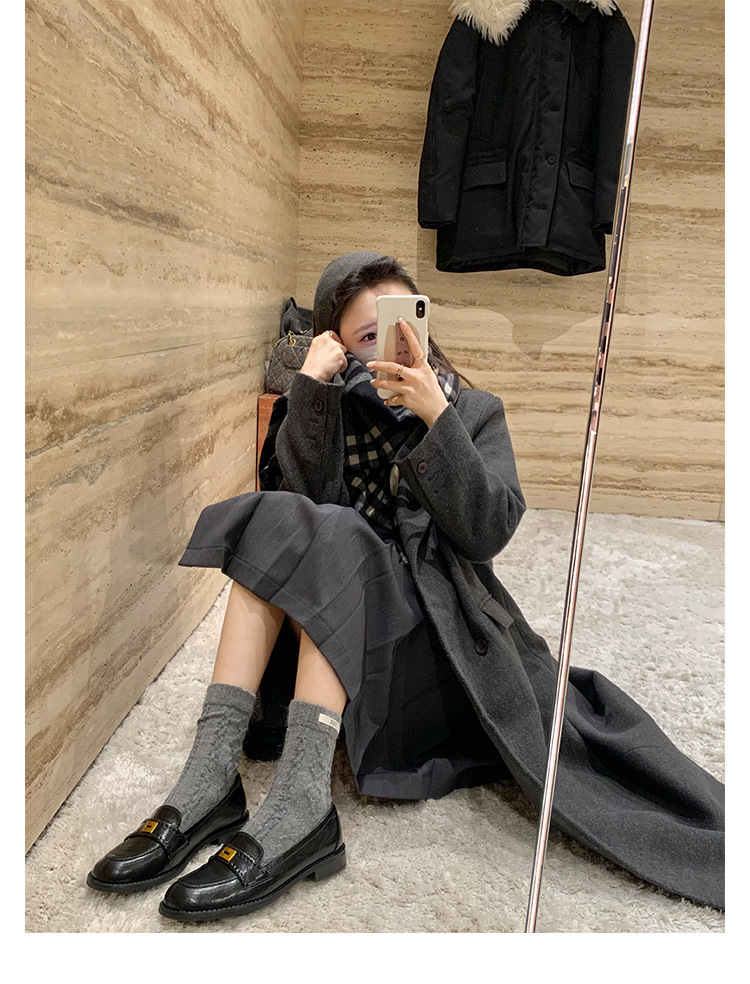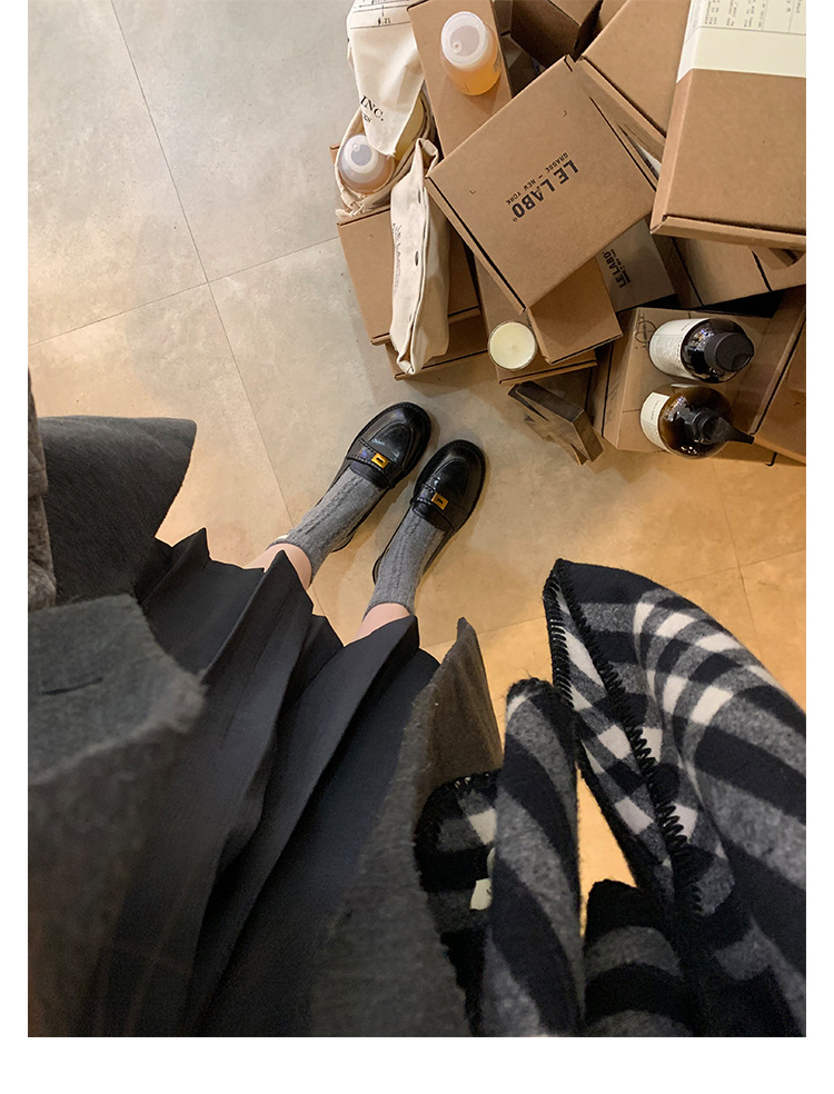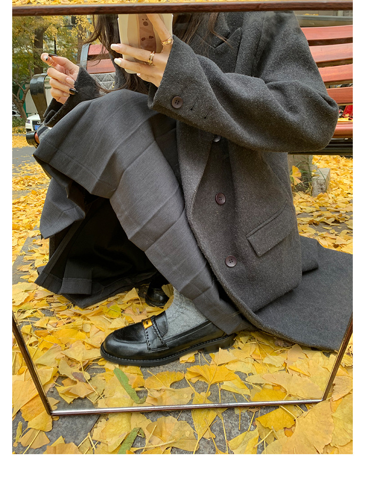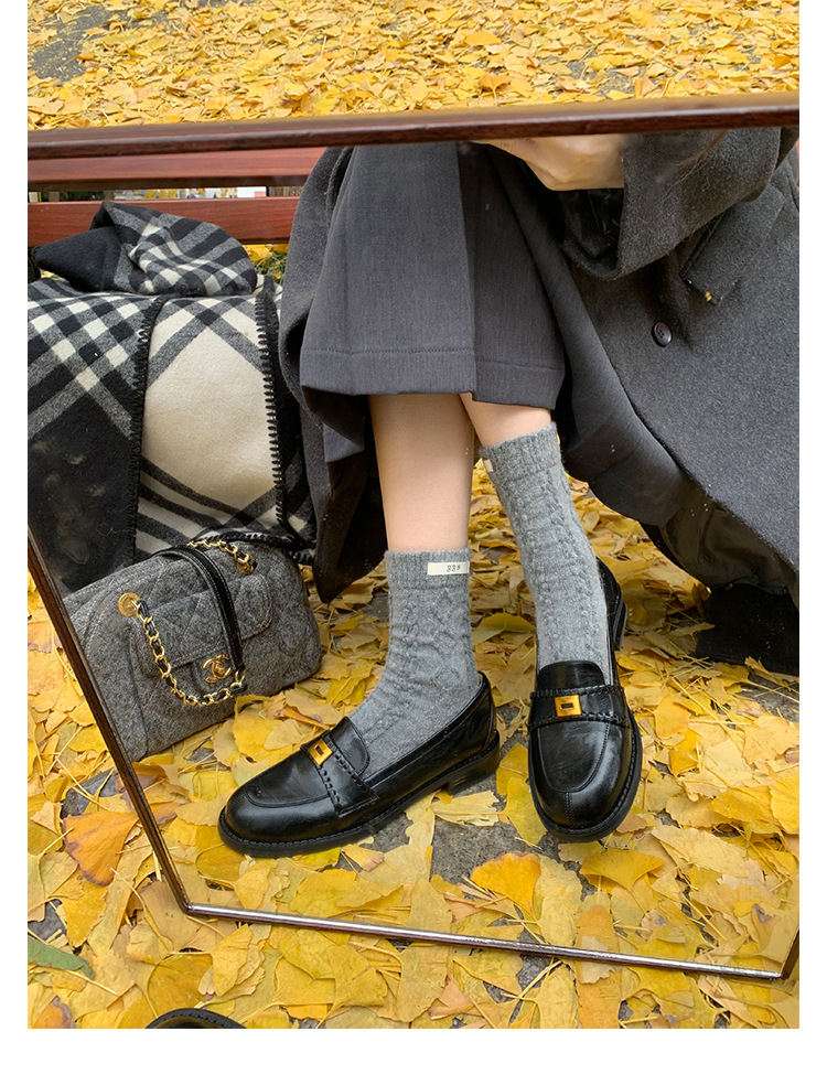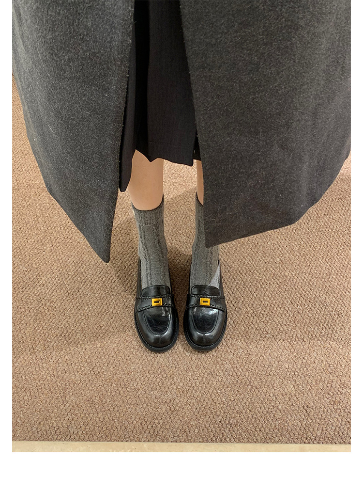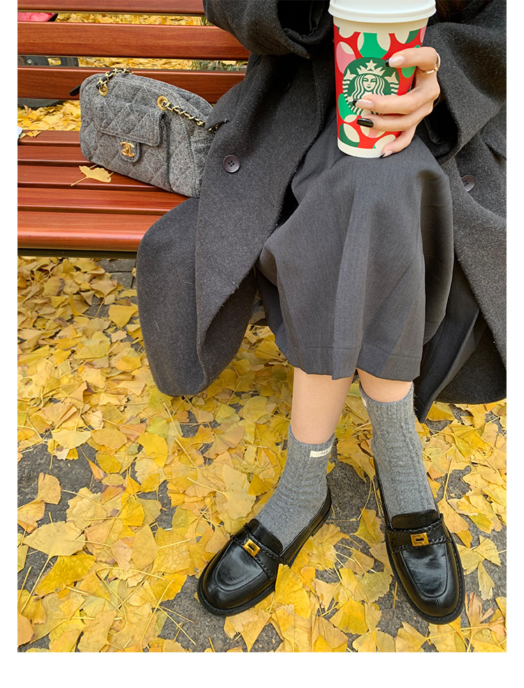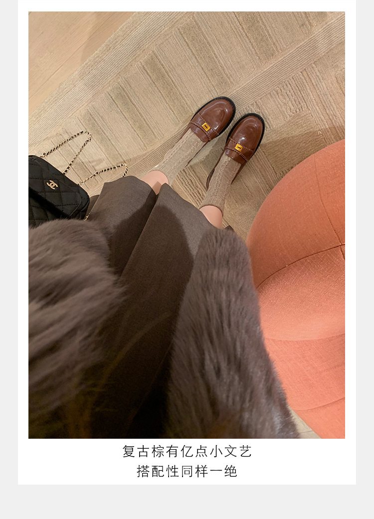 주삼촌님의~ 영국풍 레트로 가죽 로퍼 여성용 낮은 굽 다용도 편안한 얕은 굽 라운드 토 슬립온 로퍼