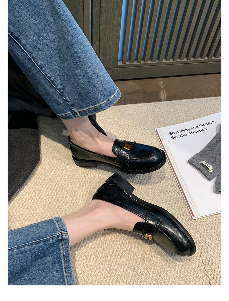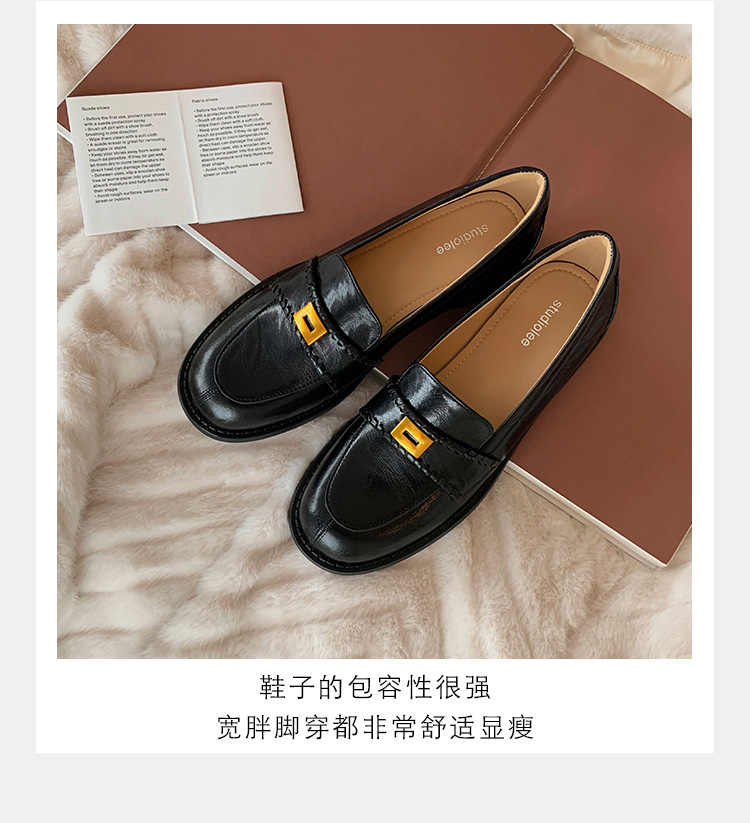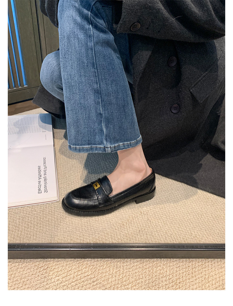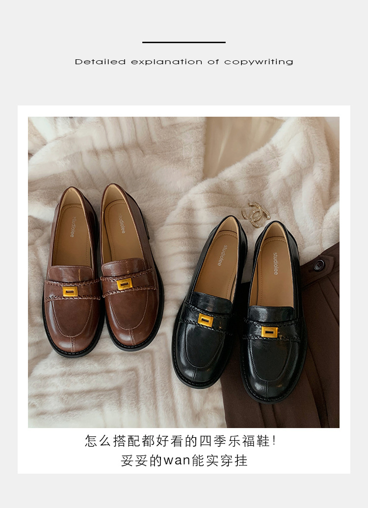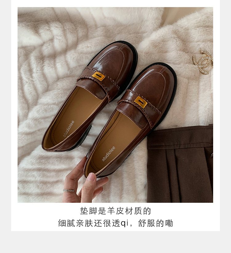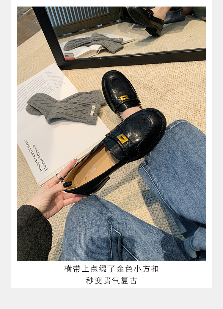 주삼촌님의~ 영국풍 레트로 가죽 로퍼 여성용 낮은 굽 다용도 편안한 얕은 굽 라운드 토 슬립온 로퍼스토어 가기