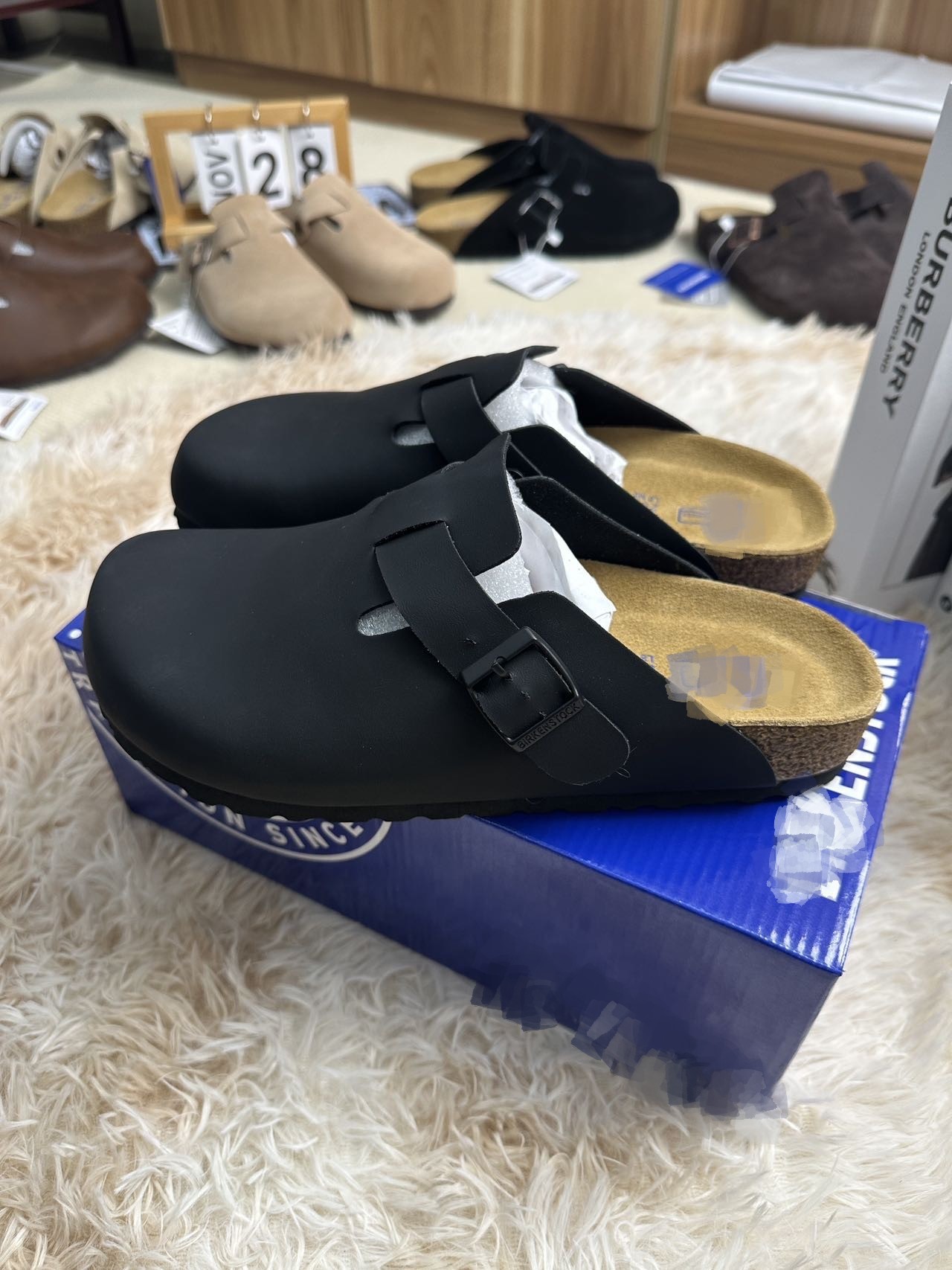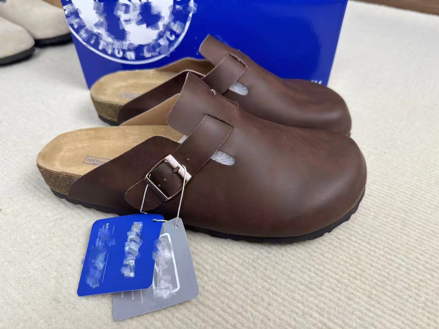 가죽 정품 보켄 신발 빈티지 남성 커버 발가락 하프 토우 캐주얼 올 매치 코르크 보켄 신발 유니섹스스토어 가기