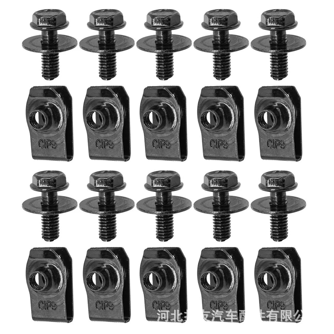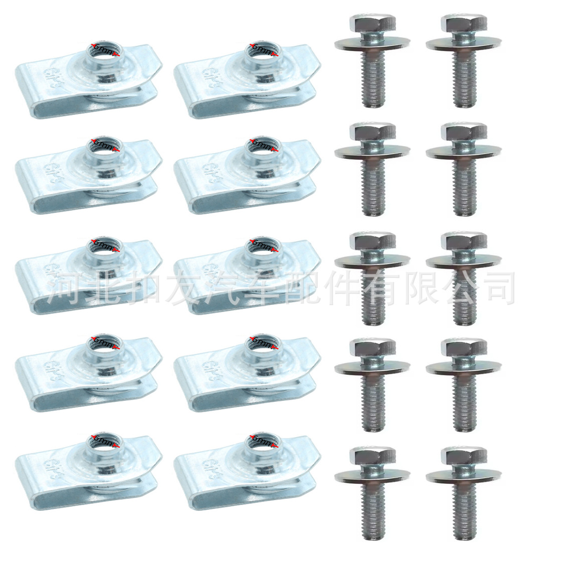 다채로운 아연 도금 6m 나사 철 시트 유니버설 자동차 버클 스크류 가스켓 자동차 U 자형 철 시트 클립 M6 볼트 부품