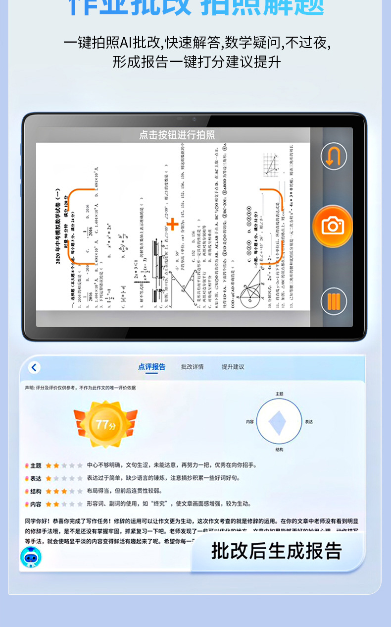 Little Genius 100점 AI 지능형 iFlytek 음성 5GI 통화 학생용 태블릿 컴퓨터 유치원부터 고등학교까지