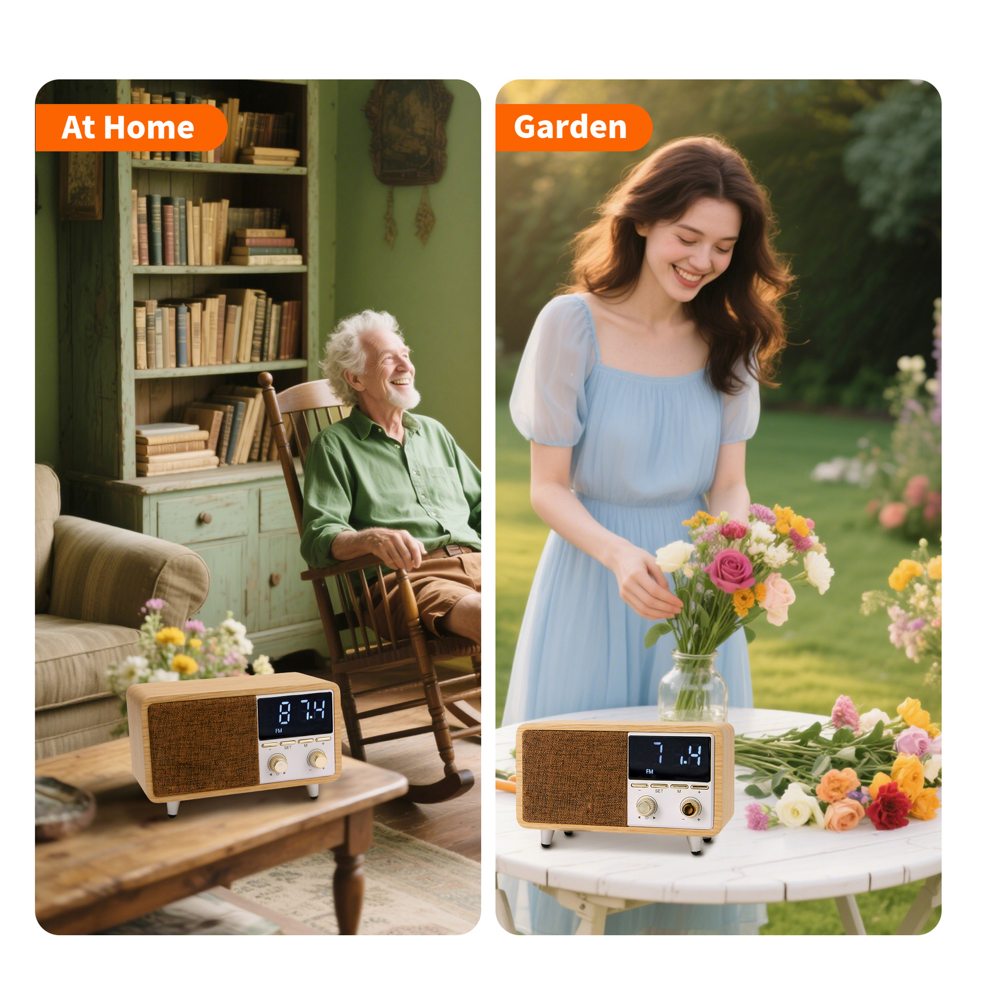 다기능 블루투스 스피커, TF 카드 플레이어, MP3 플레이어, 알람 시계, 오디오 입력, 라디오스토어 가기