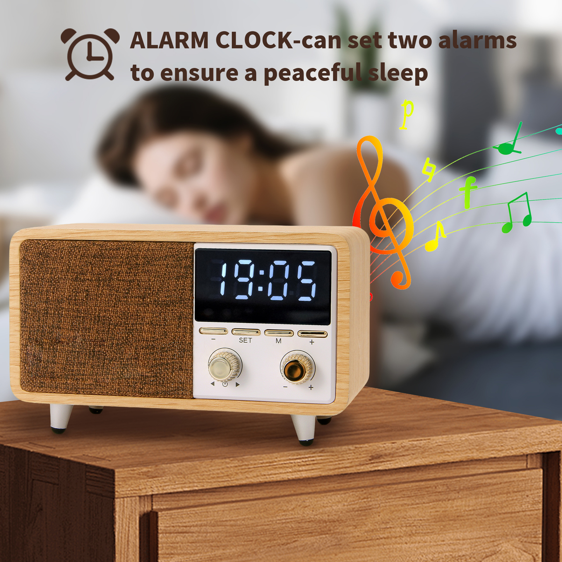 다기능 블루투스 스피커, TF 카드 플레이어, MP3 플레이어, 알람 시계, 오디오 입력, 라디오