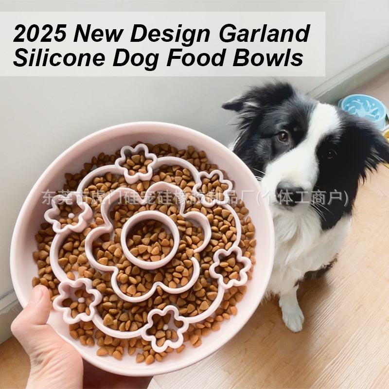 당일 발송 공장 직판 화환형 실리콘 강아지 밥그릇 식기세척기 안전 저속 급식 강아지 접시 미끄럼 방지