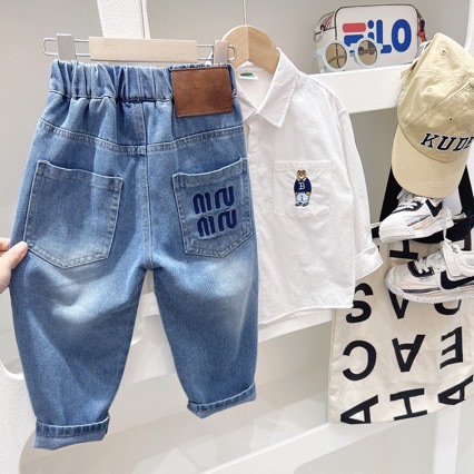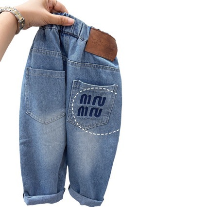 어린이 청바지 2025 봄과 가을 새로운 도착 큰 소년 느슨한 부드러운 긴 바지 아기 자수 바지