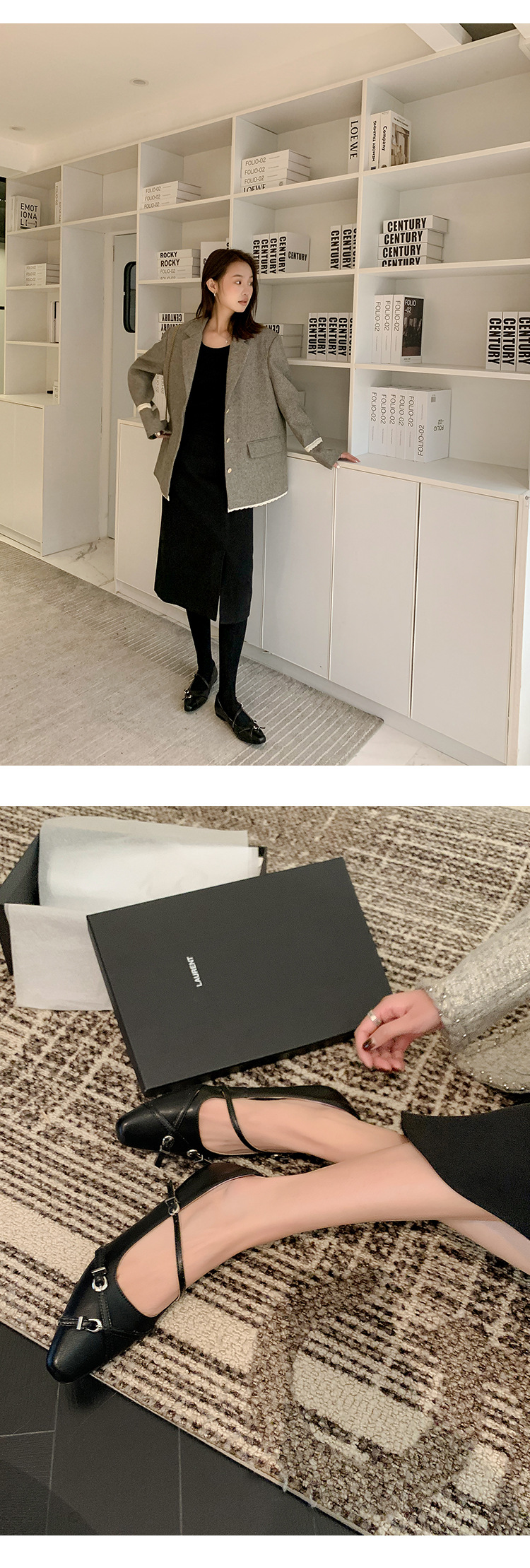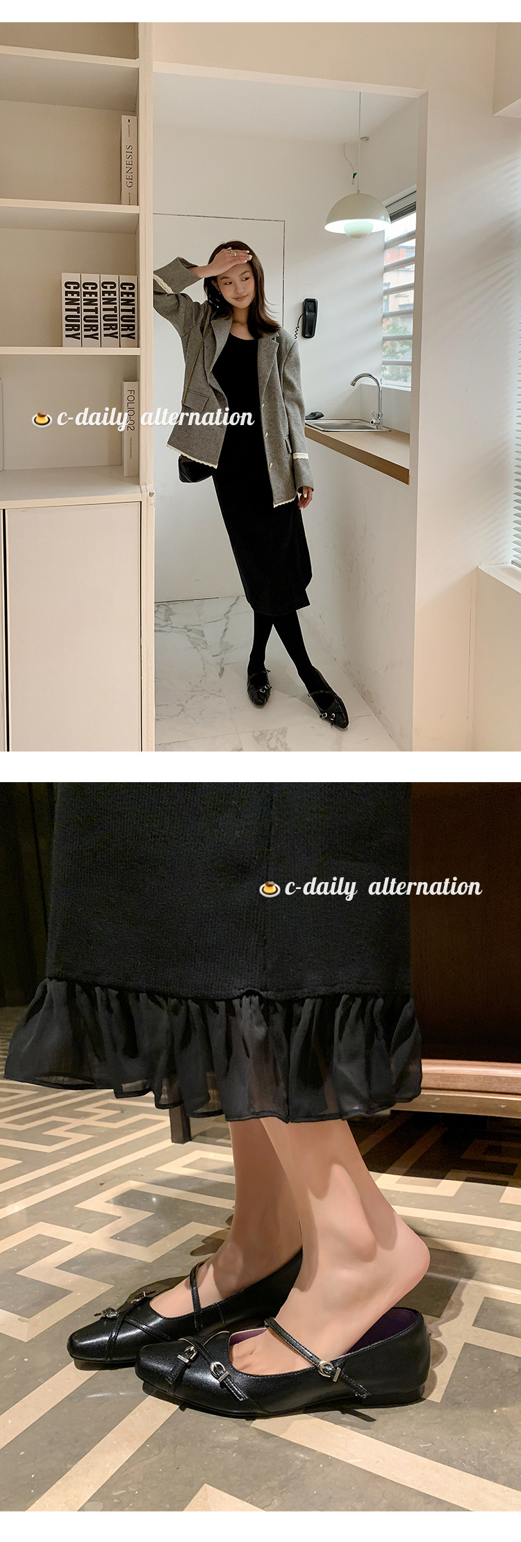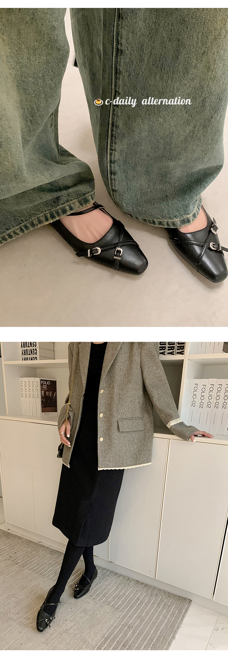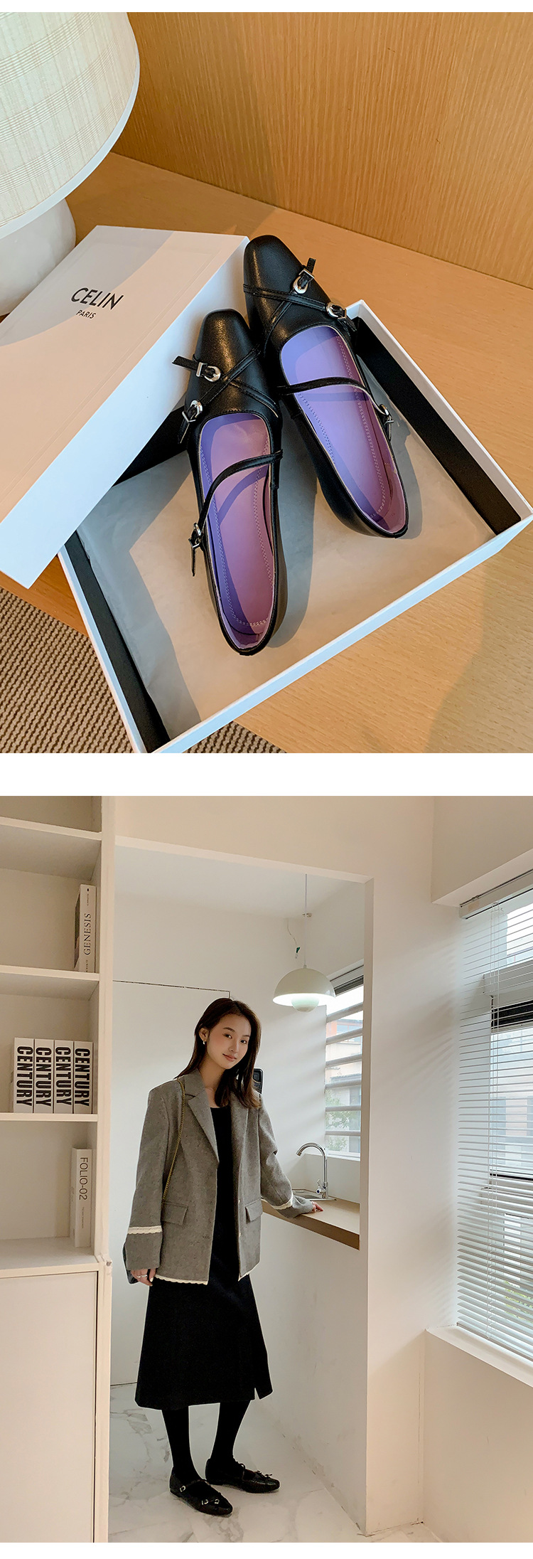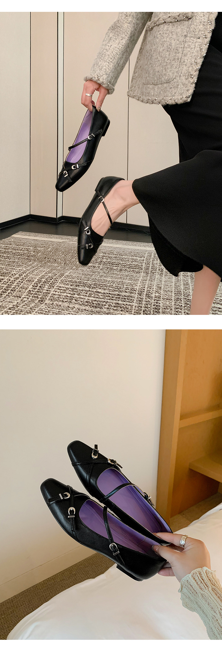 Zijin 홈 ~ 프랑스 저힐링 블랙 메리 제인 싱글 신발 여성 신발 봄과 가을 플랫 세련된 포인팅 이브닝 슈즈스토어 가기