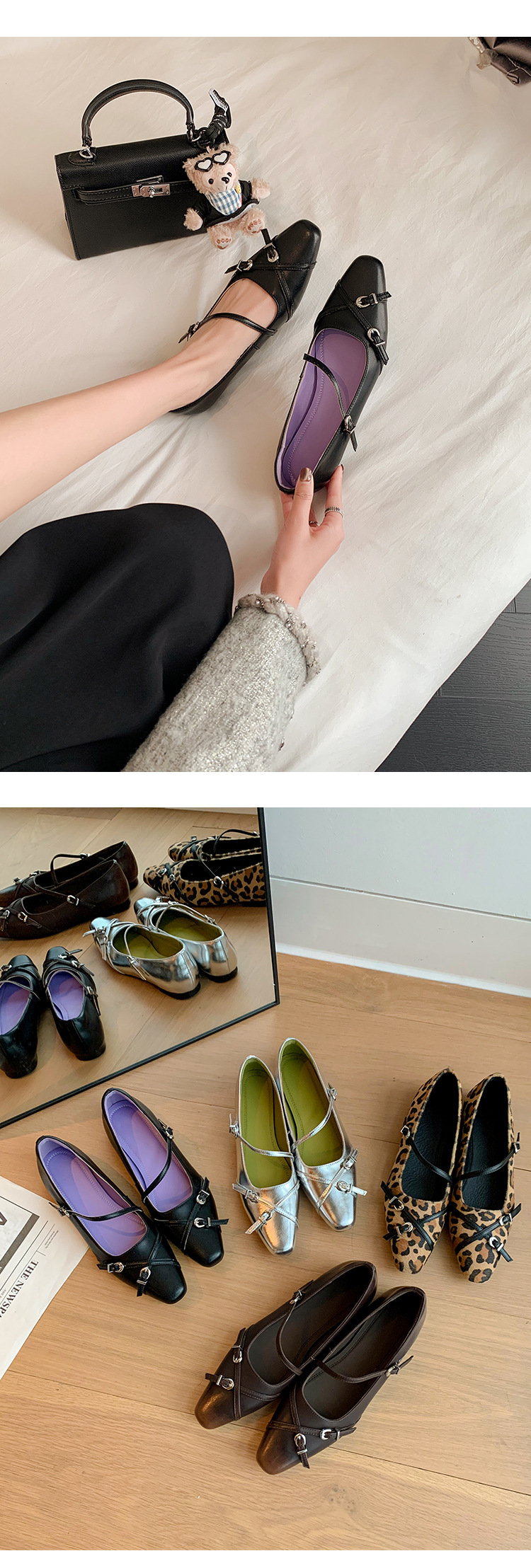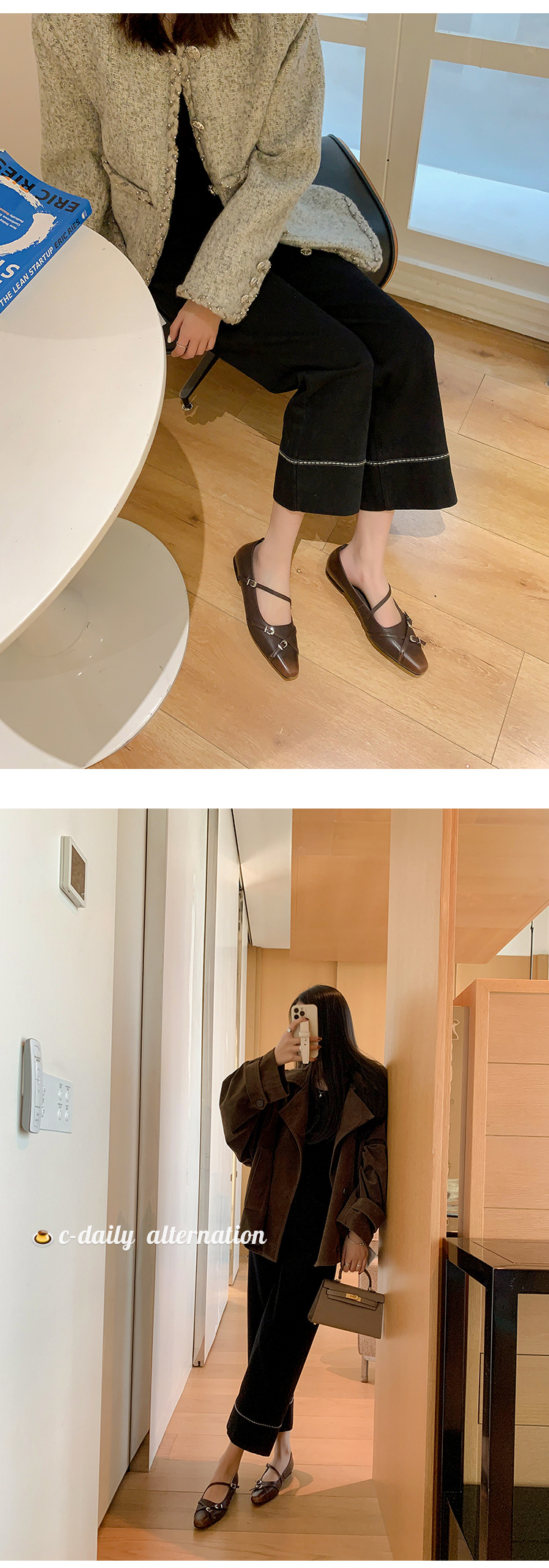 Zijin 홈 ~ 프랑스 저힐링 블랙 메리 제인 싱글 신발 여성 신발 봄과 가을 플랫 세련된 포인팅 이브닝 슈즈