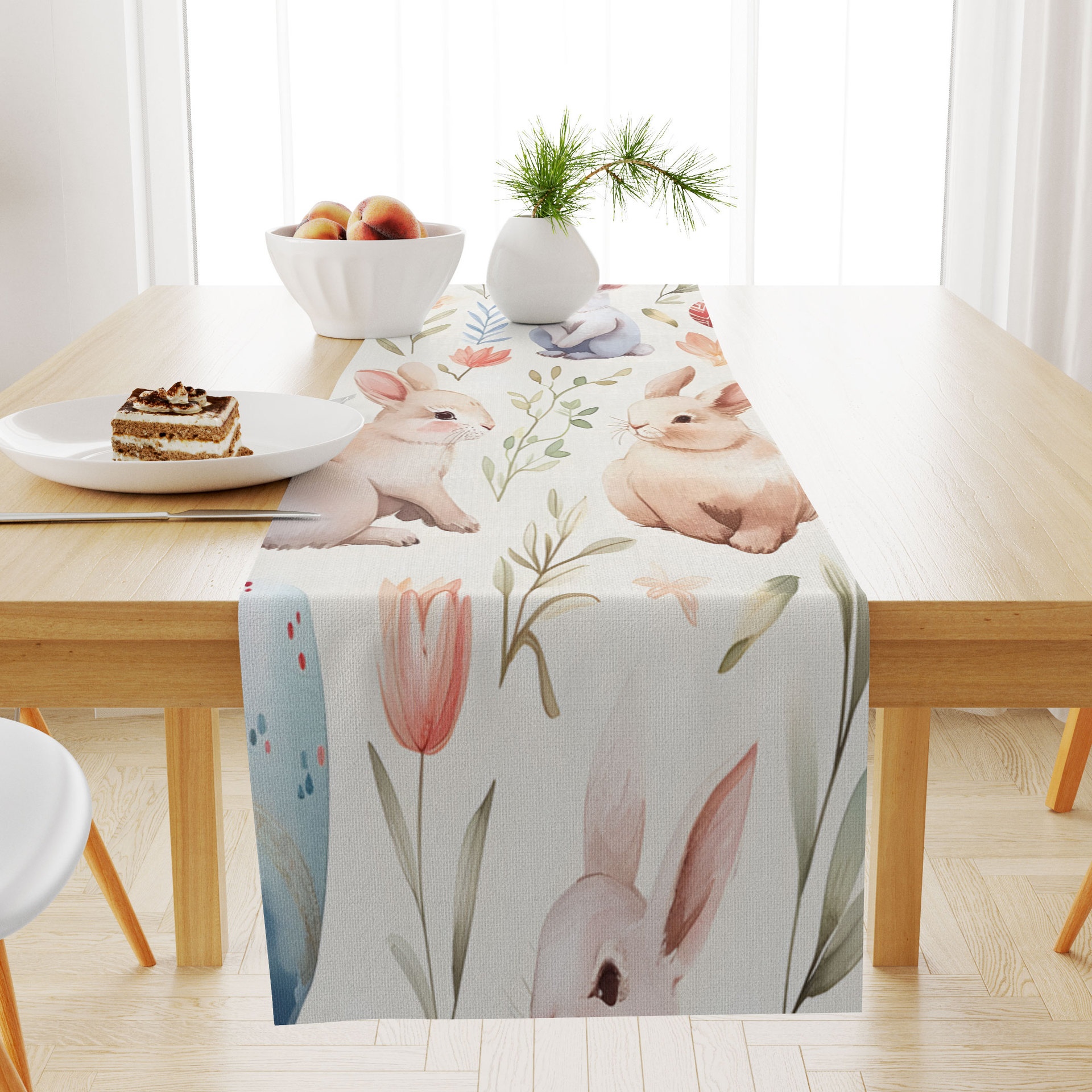 국경 부활절 달걀 토끼 리넨 테이블 러너 TV 내각 식탁보 휴일 거실 장식 커피 테이블 긴 식탁보