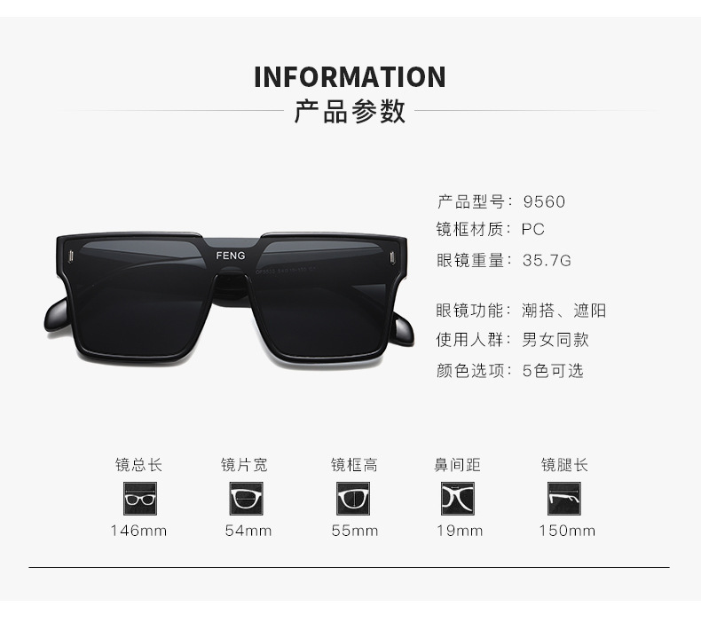 새로운 어린이 부모-자식 성인 광장 대형 프레임 선글라스 여성 레트로 스트리트 비트 안경 자외선 방지 선글라스