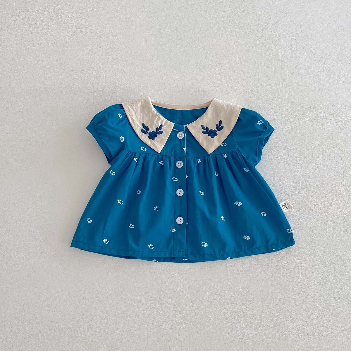 한국 스타일 여름 새로운 꽃 자수 인형 칼라 짧은 소매 세트 아기 소녀 아기 거품 짧은 소매 외출 옷스토어 가기